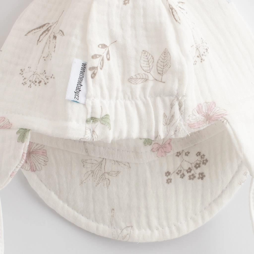 Šilt ustvarja prijetno senco, zato ščiti oči in obraz pred močnim soncem. Mušlin iz 100% bombaža je izjemno mehak, z vsakim pranjem še bolj omehča in hkrati je odporen za vsakodnevno nošenje.