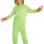 Spremenite malega oboževalca v prikupnega listnega Pokémona Grookey! Enodelni kigurumi overal iz mehkega poliestra ponuja celodnevno udobje, kapuca z velikimi očmi, listkom in ušeski pa kostumu doda izraz in avtentičen videz. Zahvaljujoč sprednjemu zapenjanju se zlahka obleče in sleče.