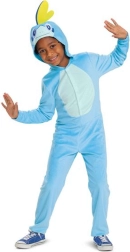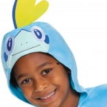 Ta licencirani kostum POKEMON Sobble je odlična izbira za pust, otroške zabave, noč čarovnic in domače razposajeno igranje. Mehki flisasti material greje in ne praska, kapuca z očmi in rumeno hrbtno plavutko doda preobleki pristni videz vodnega Pokémona.