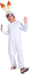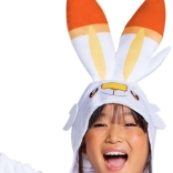 Ta bel celotelesni pajac s kapuco je navdihnjen z likom Scorbunny iz sveta POKEMON. Zaradi mehkega poliestra, praktičnega sprednjega zapiranja ter detajlov, kot so dolga ušesa in rep, je kostum idealen za pust, šolske prireditve in vsakodnevno preoblačenje doma.