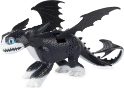 Ta skrbno izdelana figurica Nočne more, navdihnjena s svetom DreamWorks, prinaša veliko zabave otrokom in zbirateljem. S pritiskom gumba za krili se aktivirajo zmajevi zvoki in vijolični svetlobni učinki v konicah in gobcu, ki verodostojno spominjajo na ikonični izstrel zvočnega žarka. Robustna plastična izvedba s teksturiranimi luskami in izrazitimi modrimi očmi podpira domišljijsko igro ali razstavljanje na polici.