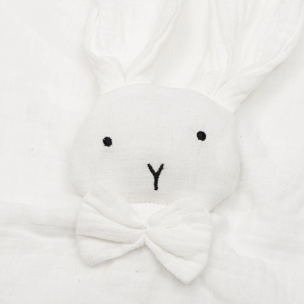 Muslinasta ninica NEW BABY Rabbit bela je nežen ljubkovalnik, ki pomaga dojenčku umiriti se, občutiti varnost in lažje zaspati. Lahka in zračna muslinasta tkanina iz organskega bombaža je prijazna do občutljive otroške kože in zagotavlja prijeten dotik.