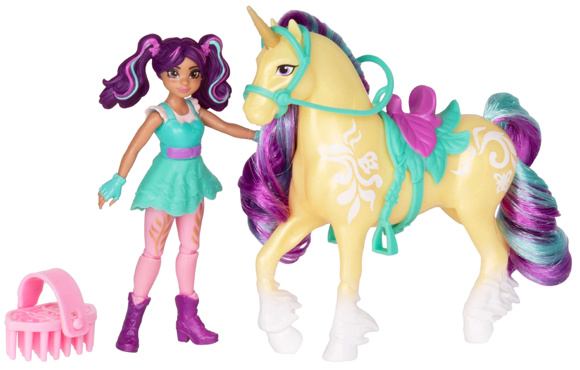 Vstopite v svet UNICORN ACADEMY, kjer se rojevata prijateljstvo in magija. Punčka Ava nosi svoj značilni barvit outfit in jo je zaradi premičnih okončin enostavno postaviti v različne poze. Enorog Leaf očara z vijolično–turkizno grivo in repom ter dekorativnim sedlom z uzdo za igro ježe.