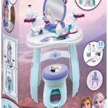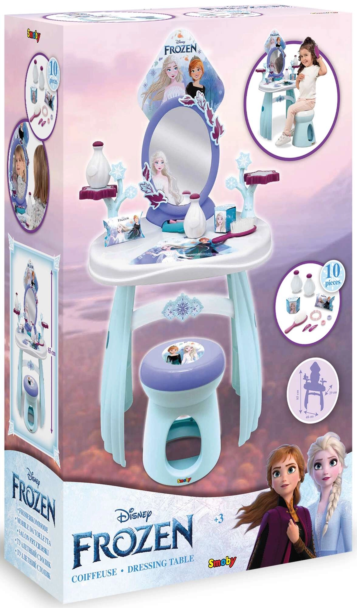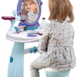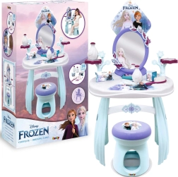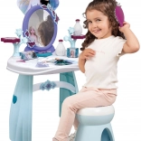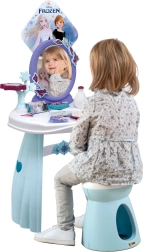 Toaletna mizica, navdihnjena s svetom FROZEN, bo navdušila vse male princeske. Stabilna plastična konstrukcija, gladki robovi in varno ogledalo podpirajo varno igro, medtem ko praktičen stolček omogoča udobno sedenje pri česanjem in okraševanju. Na plošči boste našli odlagalne površine in držala za dodatke, da bo vse lepo pri roki.