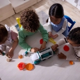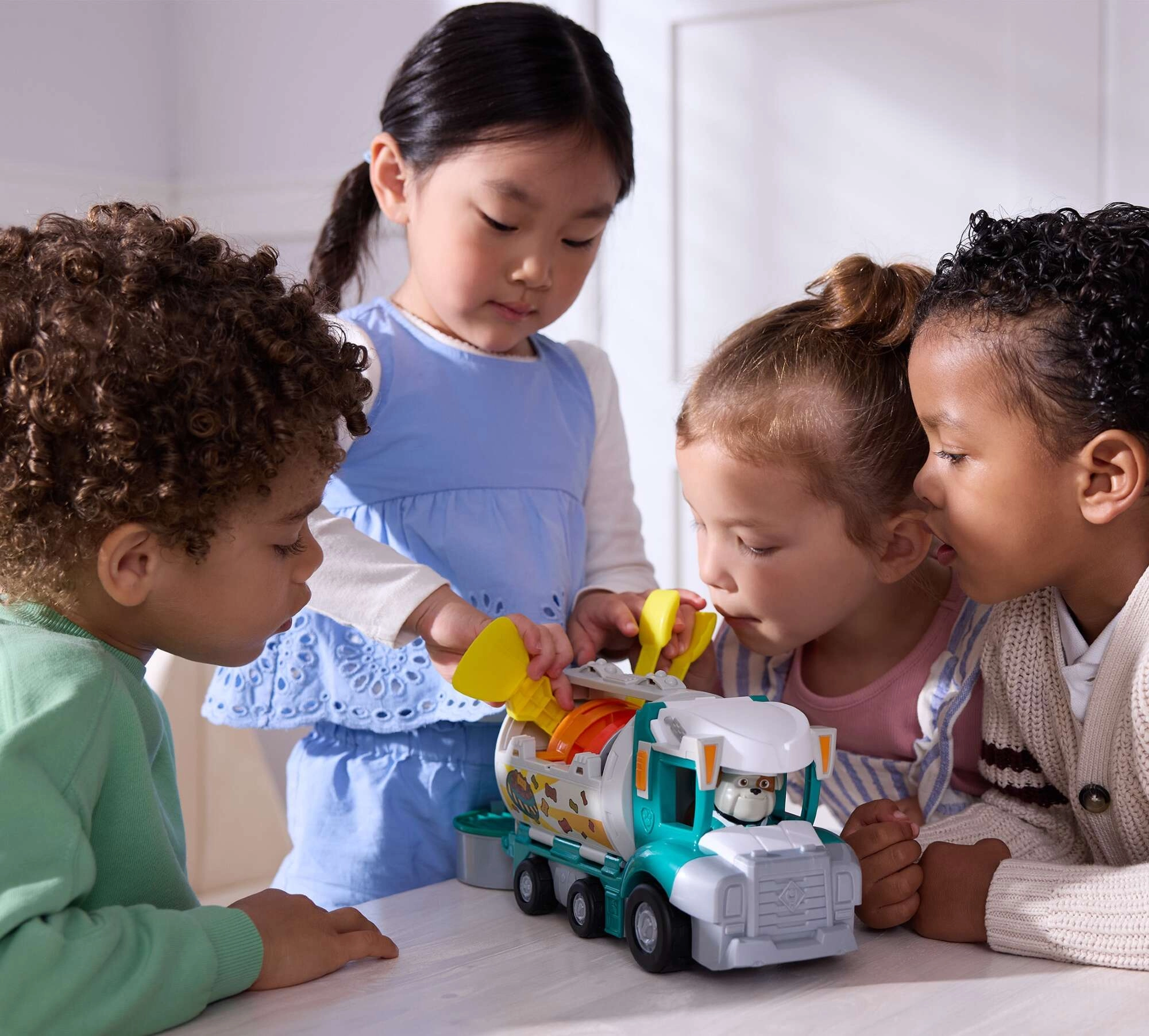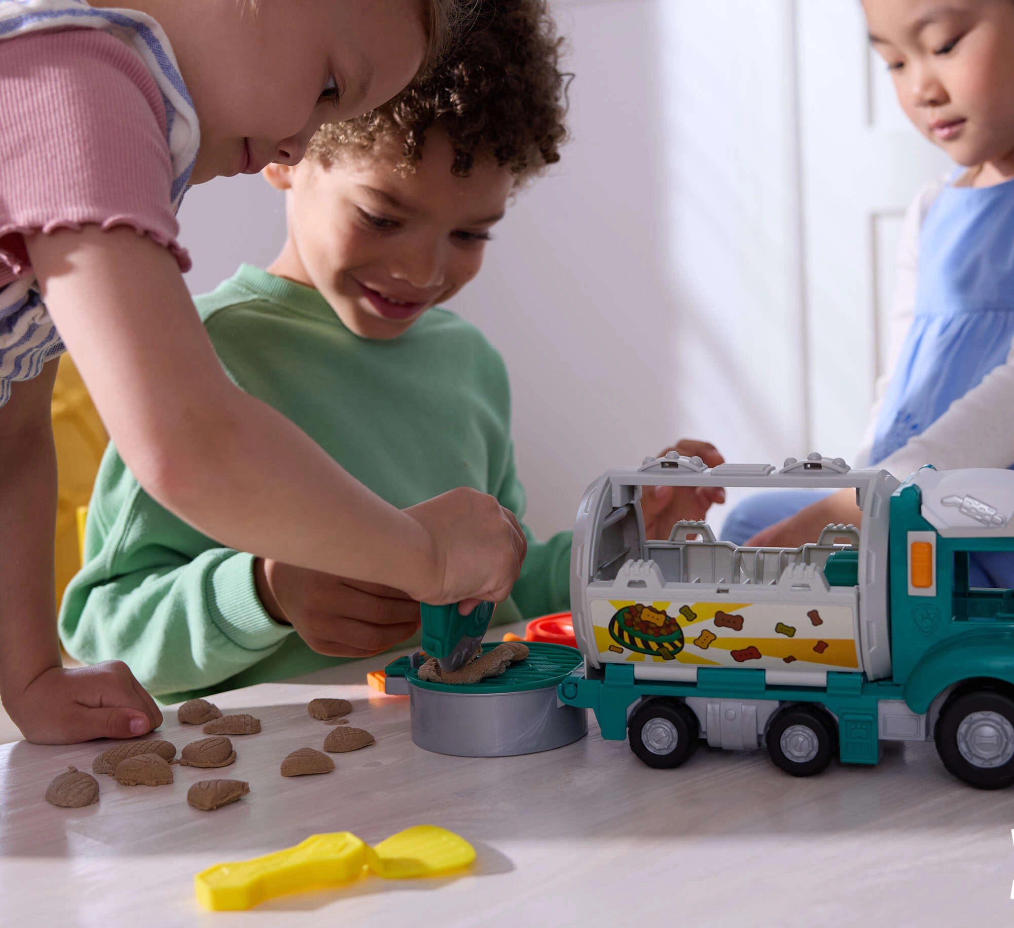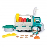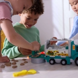 Robustno vozilo s premičnimi kolesi, predelki in odpirajočimi se deli ponuja otrokom realistično akcijsko igro – od prevoza »materiala« do serviranja dobrot.