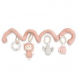 Ljubka spiralna igračka z motivom lame znamke NEW BABY otroku zagotovi interaktivno zabavo doma in na poti. Zahvaljujoč pametni spiralni obliki jo preprosto pritrdite na posteljico, voziček ali avtosedež. Vsebuje piskalo, ropotuljico in grizalo za spodbujanje čutov ter pomiritev pri izraščanju zobkov. Izdelano iz kakovostnih in varnih materialov.