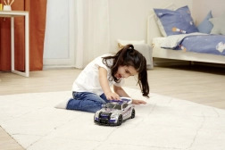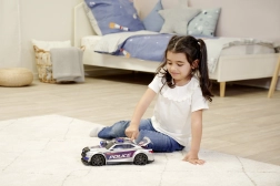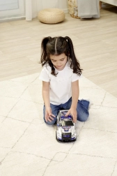 Zaradi trde plastične karoserije in velikih koles je avto stabilen in pripravljen na vsakodnevno igranje v notranjih prostorih. Odlično darilo za male ljubitelje akcije in hitre vožnje.