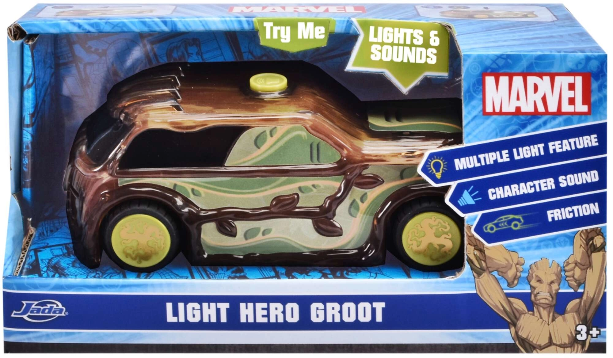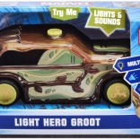 Zabaven avtomobilček, navdihnjen z likom GROOT iz univerzuma MARVEL, bo otroke navdušil s svetlobnimi in zvočnimi učinki. Dovolj je pritisniti rumen gumb na strehi in zaženejo se luči ter zvoki lika in avtomobila. Slogovni »lesen« videz z listi in vejicami, pogon na potisk ter kakovostna izdelava naredijo to igračo za popolno darilo za male superjunake.