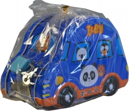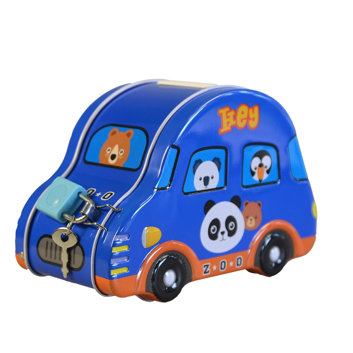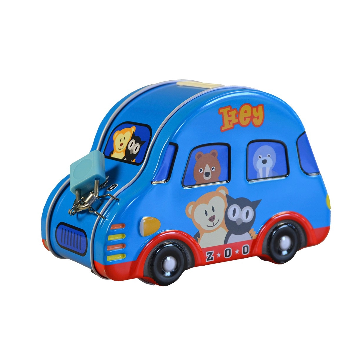 Ta otroški hranilnik v obliki avtomobilčka združuje igriv dizajn s praktičnim varovanjem. Kovinska izdelava je trpežna, barvni potiski z živalicami pa pritegnejo na prvi pogled. Na zgornji strani je reža za metanje kovancev, zadaj ali spredaj pa majhna ključavnica s ključi za zavarovanje prihrankov.