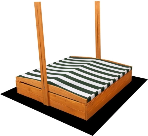 Strešica je zasnovana za univerzalno uporabo z večino komercialno dostopnih peskovnikov 120 × 120 cm. Trdni leseni stebri in odporna ponjava ustvarjajo varno in udobno okolje za otroško igro, medtem ko nastavljiva višina omogoča preprosto uravnavanje sence čez dan.