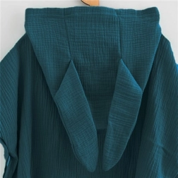 Pametne podrobnosti olajšajo vsak dan – kapuca z ušeski za dodatno udobje, stranski pritiskači za hitro oblačenje in prilagodljiva odprtina za roke, ter ohlapen kroj, ki pristaja vsaki postavi in raste z otrokom.