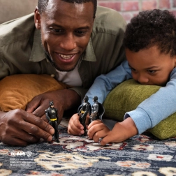 V pakiranju najdete tri različne različice Batmana, ki skupaj tvorijo impresivno kolekcijo ob 85. obletnici Temnega viteza.