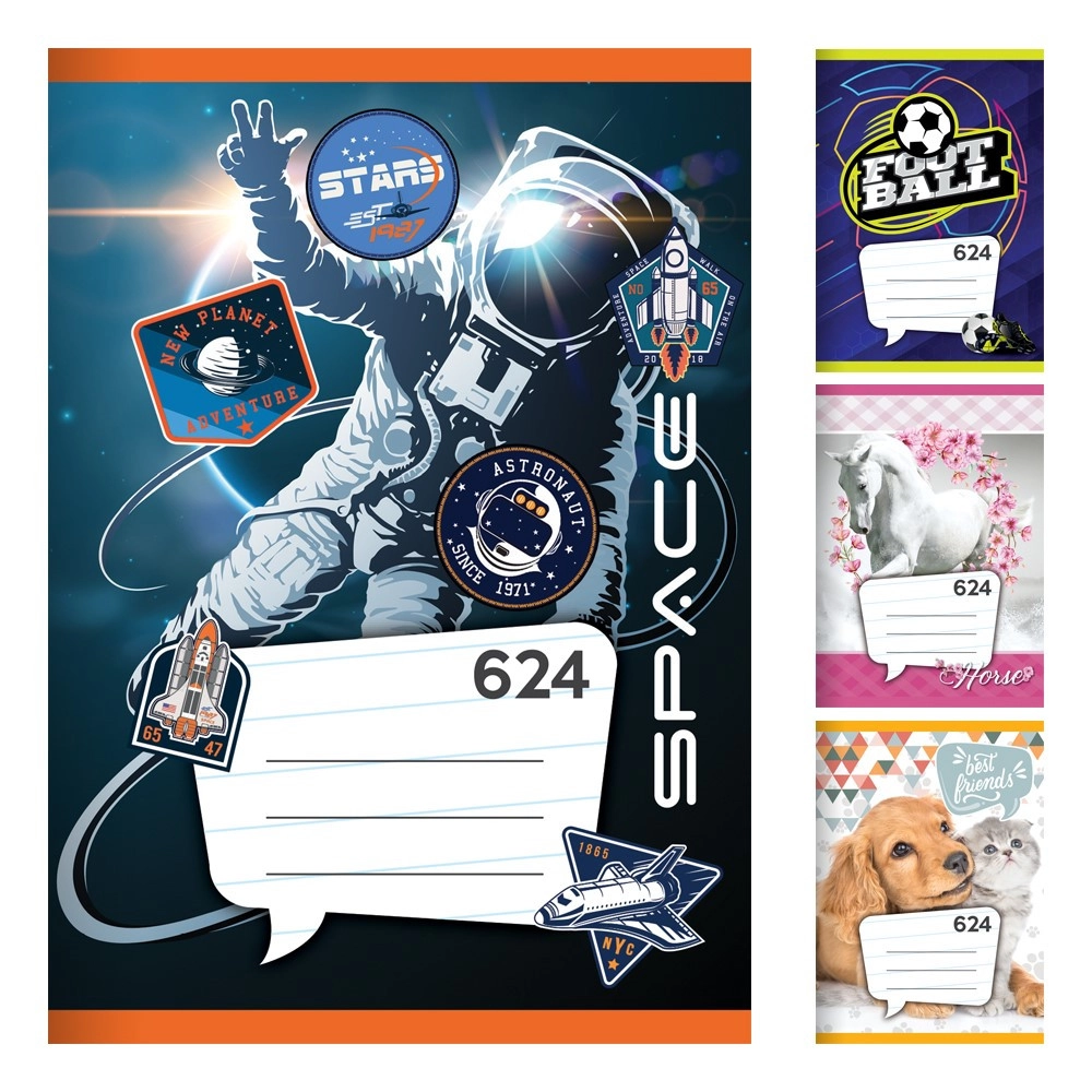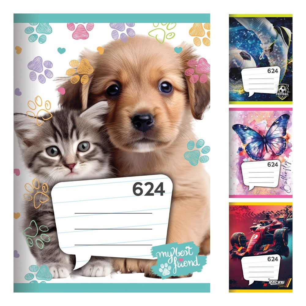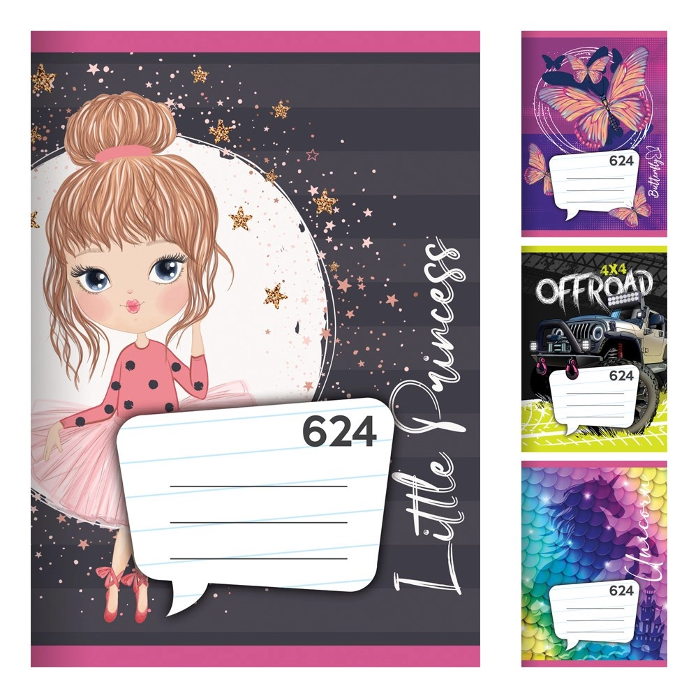 Zvezek je dobavljiv v pakiranju po 20 kosov (cena navedena za 1 kos) in je na voljo v do 20 motivih, tako da zlahka izberete dizajn, ki vam ustreza. Jasna 8-mm liniatura pomaga ohranjati pisavo enakomerno in pregledno.