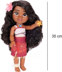 Ta podrobno izdelana lutka, navdihnjena s filmom Disney MOANA 2, ima dolge valovite lase, ki jih je mogoče oblikovati, ter ikonično otoško opravo s cvetličnim dodatkom. Ob pritisku gumba na ogrlici zapoje odlomke pesmi v več jezikih, zato se otroci zlahka vključijo v igro in petje.
