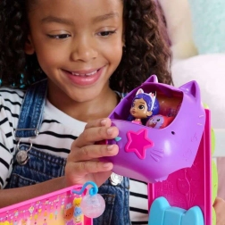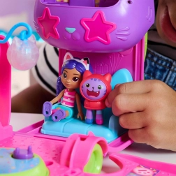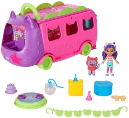 Zabavni avtobus iz priljubljene serije GABBIN mačji domek se v hipu spremeni iz voznega busa v slogovno sceno za zabave. Odprite sprednji del in preklopite voznikovo kabino – v notranjosti vas čakajo plesni podij, mačja kavč sedežna in vrteči se karaoke oder. Zaradi kompaktne zasnove in koles je set idealen za na pot ali domačo igro.