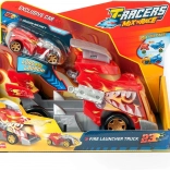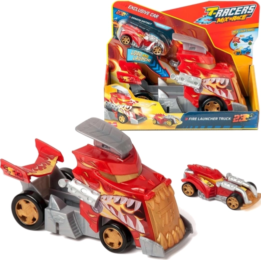 Set T-Racers Mix ’N Race Fire Launcher Truck otrokom prinaša dinamične dirke in svobodo lastnega ustvarjanja. Tovorno vozilo v slogu zmaja prepelje vaše avtomobilčke in jih zahvaljujoč vgrajeni izstreljevalni rampi pošlje naprej z bliskovito hitrostjo. Priložen je tudi ekskluzivni dirkalnik, katerega dele je mogoče kombinirati z drugimi modeli serije Mix ’N Race.