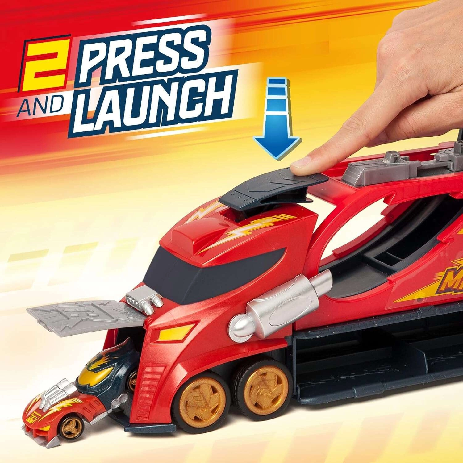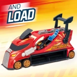 Thunder Truck deluje kot prenosni kovček za do 3 avtomobilčke in hkrati kot zmogljiv izstreljevalnik za bliskovite dirke.