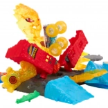 Obvladaj areno s centralnim ognjenim stolpom, vzmetnim izstreljevalnikom in interaktivnimi ovirami. Vsak natančen zadetek sproži učinkovito eksplozijo, zamah vrat ali padec delov – popolno za trening natančnosti in tekmovalno igro s prijatelji. Idealen darilni set za oboževalce HOT WHEELS in monster truckov.