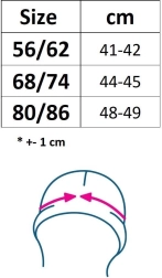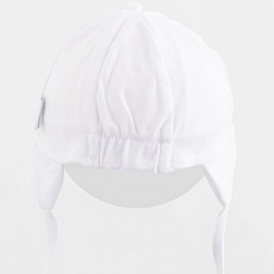 Kapica je oblikovana preko ušesk in jo zahvaljujoč vrvicam zlahka prilagodite tako, da trdno drži tudi pri gibanju, a hkrati ne tišči. Certifikat OEKO‑TEX STANDARD 100 zagotavlja varnost materiala za otroke.