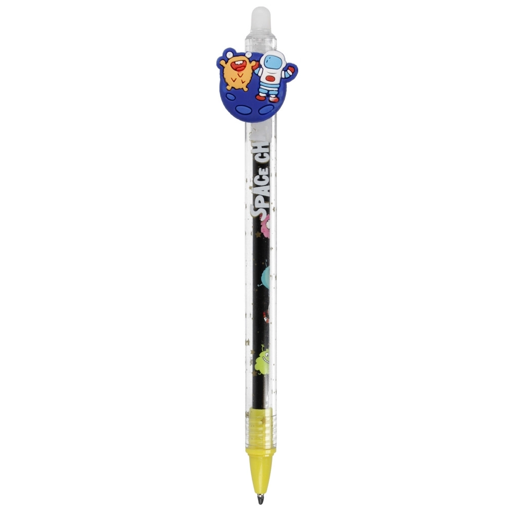 Prozorno ohišje s planeti, raketami in bleščicami dopolnjuje zabaven topper – iz svinčnika nastane trendovski dodatek za peresnico.