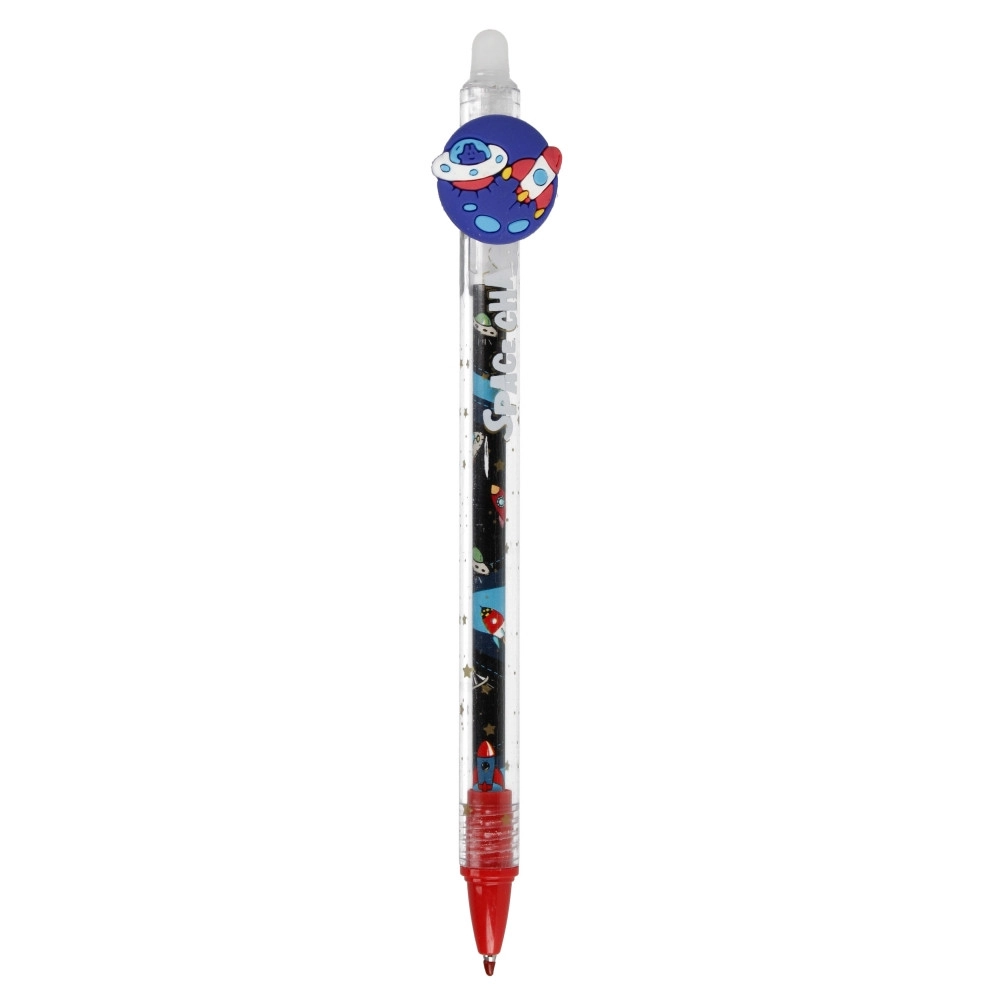 Stajliš kemični svinčnik s temo Vesolja je idealen za v šolo, za zapisovanje opomb ali kot prijetno darilo. Prozorno ohišje z vesoljskimi elementi, planeti in raketami poudarja izviren dizajn, ki izstopa v peresnici in na pisalni mizi.