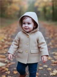 Otroški plašček s kapuco New Baby UNI je zasnovan za svobodno gibanje in udobno nošenje v hladnejših dneh. Kapuca ščiti glavo in ušesa pred vetrom, popolna podloga iz 100 % bombaža zagotavlja prijeten občutek na koži in zračnost. Elegantni leseni gumbi dajejo plaščku brezčasen videz, ki ga zlahka kombinirate z vsakodnevnimi outfiti.