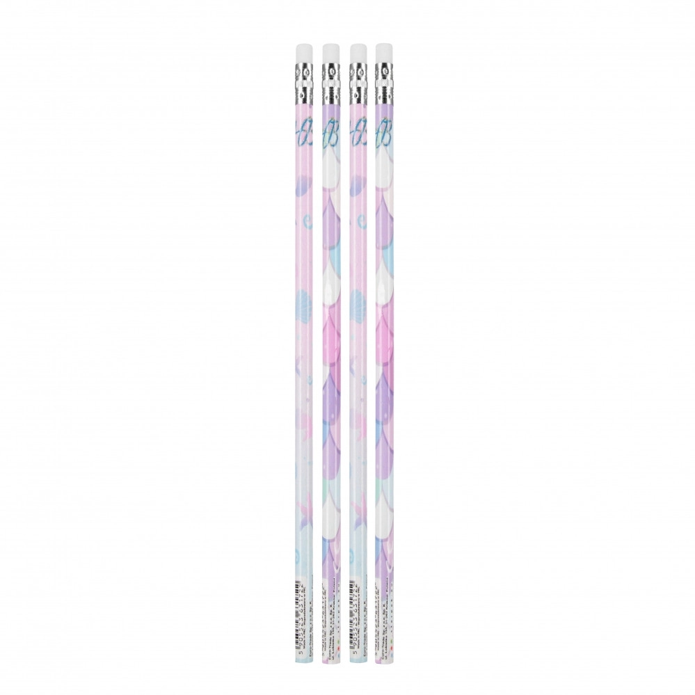 Ljubki svinčniki z motivom morske deklice bodo razveselili vsakega malega ustvarjalca in šolarja. V pakiranju najdete 4 kose svinčnikov z integrirano radirko, udobno dolžino 19 cm in trdoto HB za običajno pisanje in risanje. Idealni šolski pripomoček za otroke od 3 let.