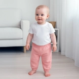 Odkrijte udobje in praktičnost v enem. Ta otroški komplet združuje mehko bombažno majico brez zapenjanja z nežnim obrobom okoli vratu ter moderne enobarvne mušelinaste hlače z ohlapnim krojem. Zaradi lahkega, zračnega materiala je idealen za celodnevno nošenje doma, na prostem in v vrtcu.