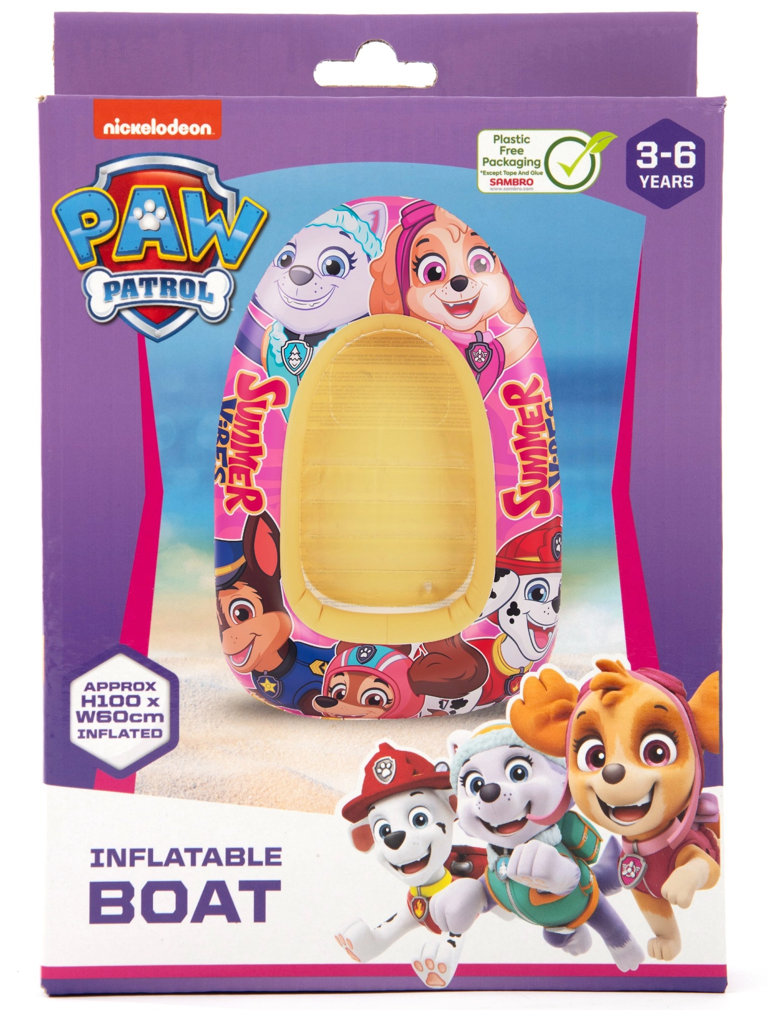 Napihljiv čoln s priljubljenimi junakinjami iz PAW PATROL bo razveselil vsakega malega ljubitelja vode. Zahvaljujoč barvitemu dizajnu z likoma Skye in Everest na vodi lepo izstopa in otroke spodbuja k aktivnemu gibanju. Lahek, enostaven za prenašanje in pripravljen za napihovanje v hipu.