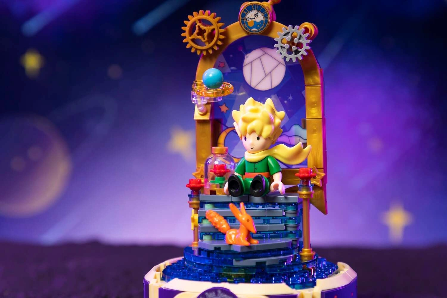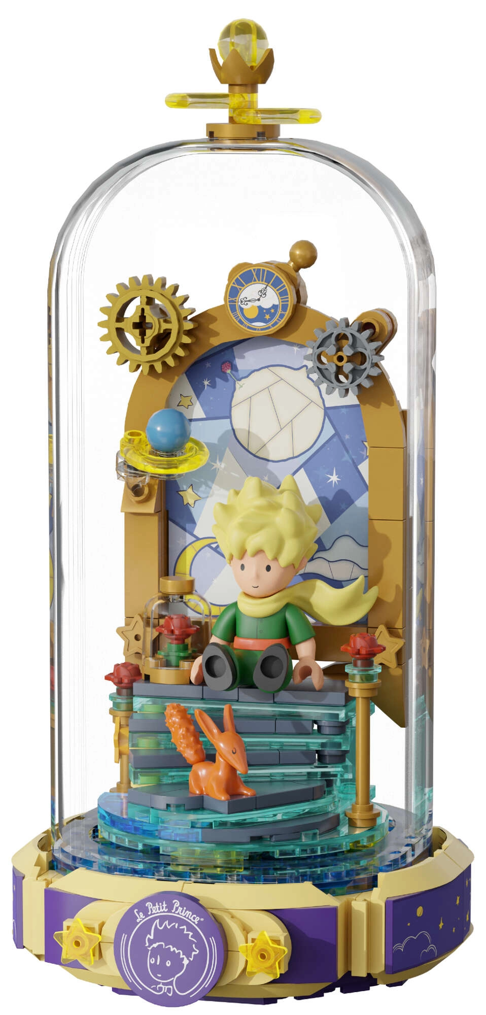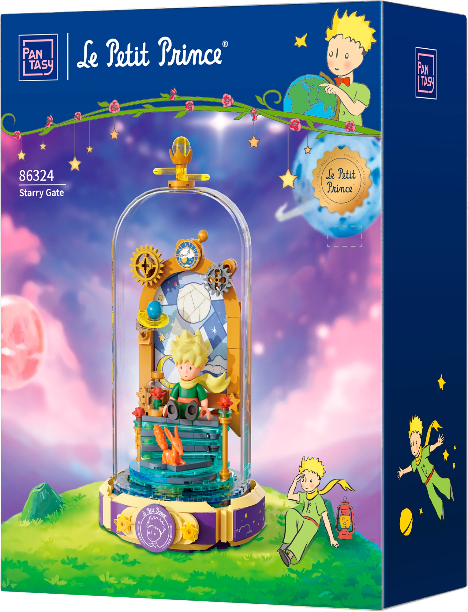 Vstopite v poetični svet LE PETIT PRINCE in sestavite prizor »Zvezdna vrata« z Malim princem in lisico, okrašen z zlatimi zvezdami, vrtnicami in nežnimi ornamenti. Podstavek v obliki odprte knjige z napisom »Le Petit Prince« poudari literarni čar te brezčasne legende.