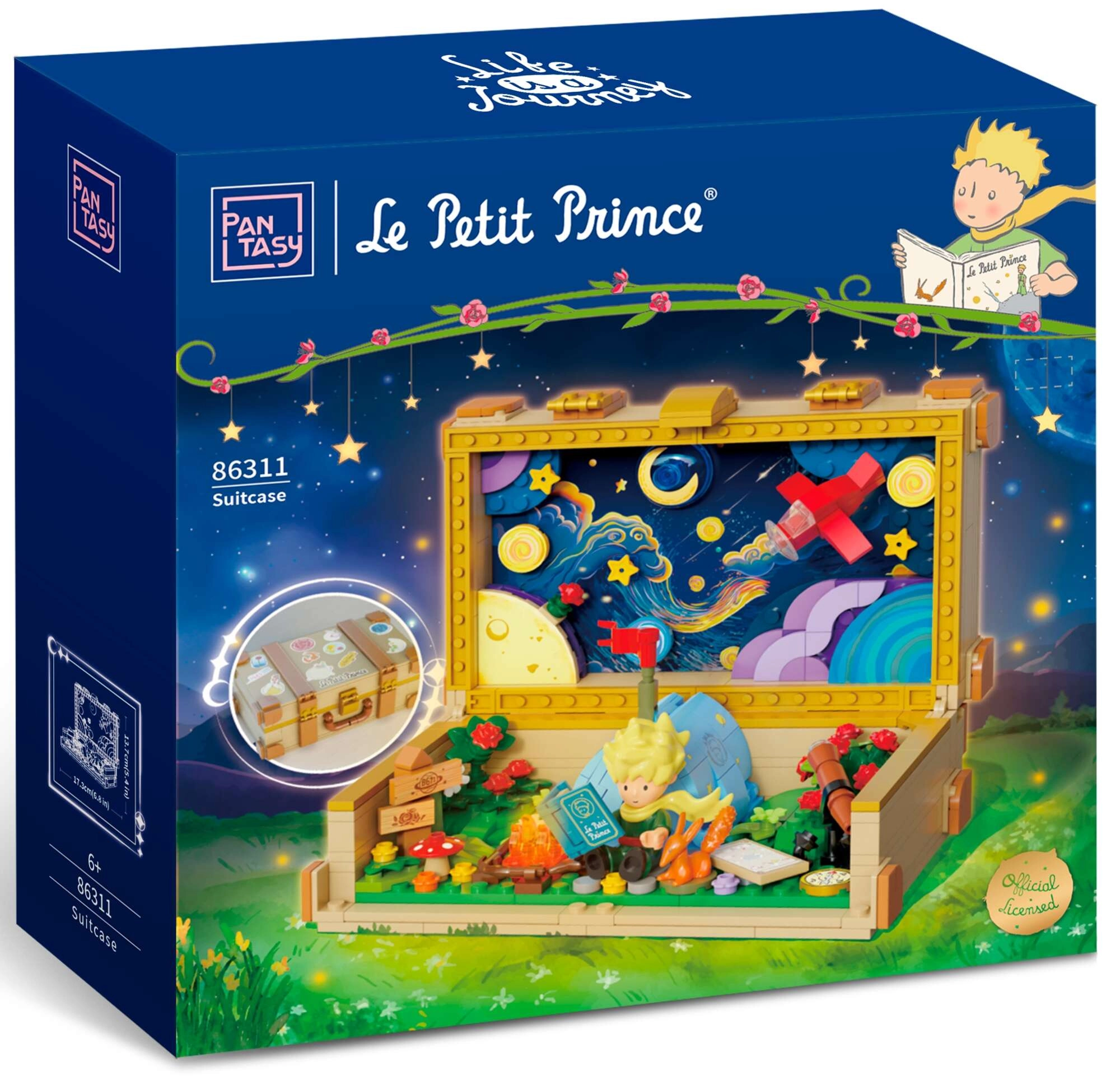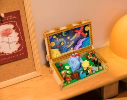Ta oblikovalski gradbeni komplet Pantasy povezuje brezčasno literarno klasiko z moderno sestavljanko. Odpiralni kovček skriva slikovit prizor z zvezdami, planeti in rdečim letalom, dopolnjen s kuriščem, vrtnico, daljnogledom, lisico in figurico, ki bere knjigo. Zahvaljujoč natančnemu prileganju kosov je sestavljanje tekoče, model pa po dokončanju deluje kot dekorativna diorama.