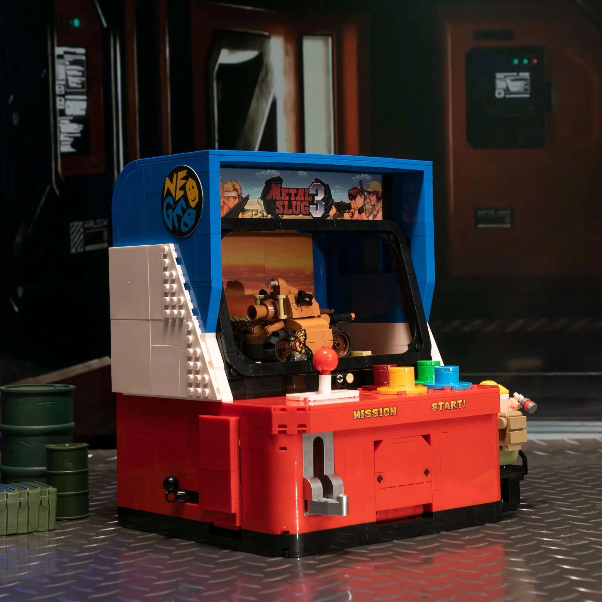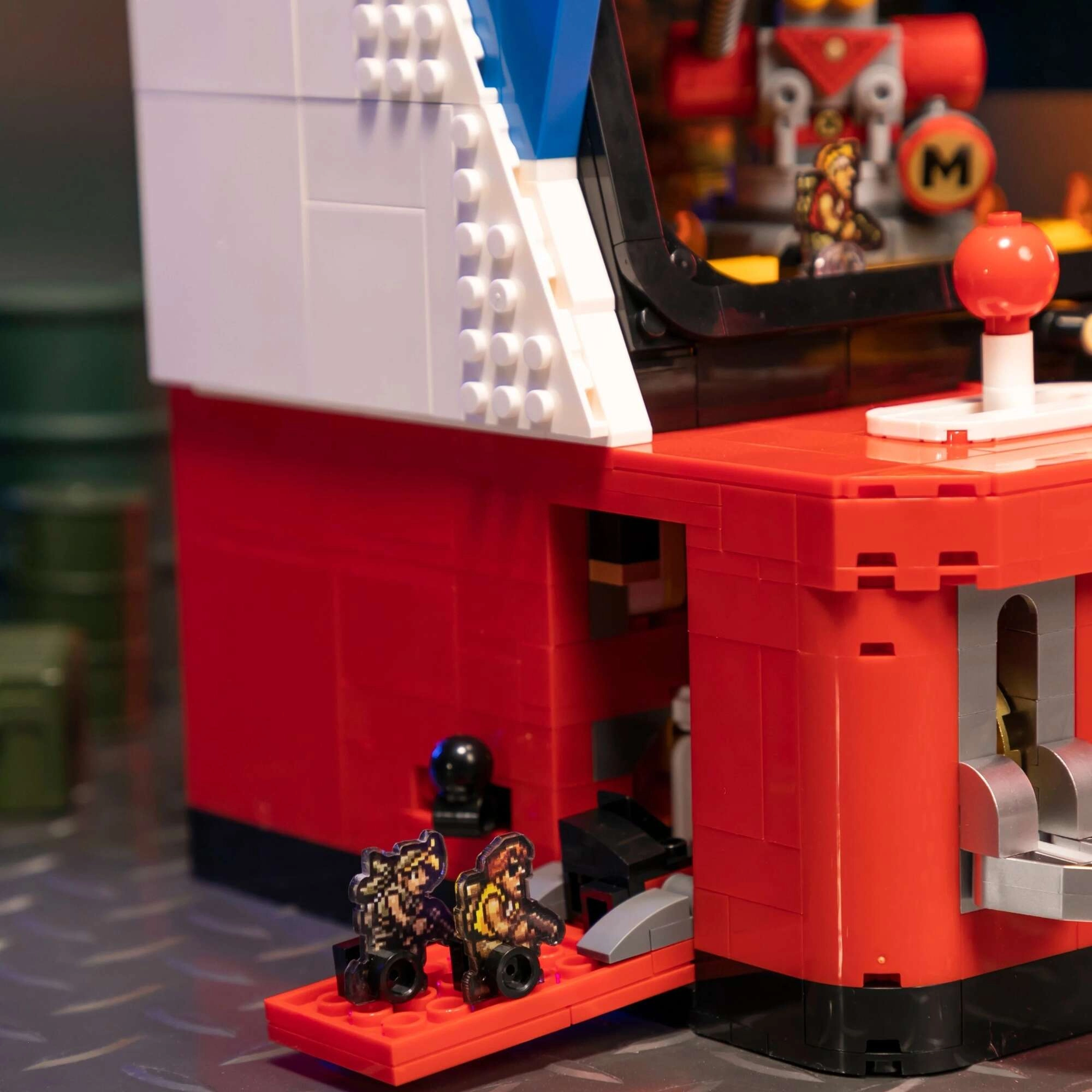 Ta vrhunski komplet je poklon klasičnim arkadnim avtomatom ter prinaša retro videz v sodobni izvedbi. Robustna silhueta v kovinskih odtenkih sive zvesto povzema estetiko serije METAL SLUG, po sestavljanju pa postane izstopajoč kos vsake igralne ali zbirateljske vitrinske police.