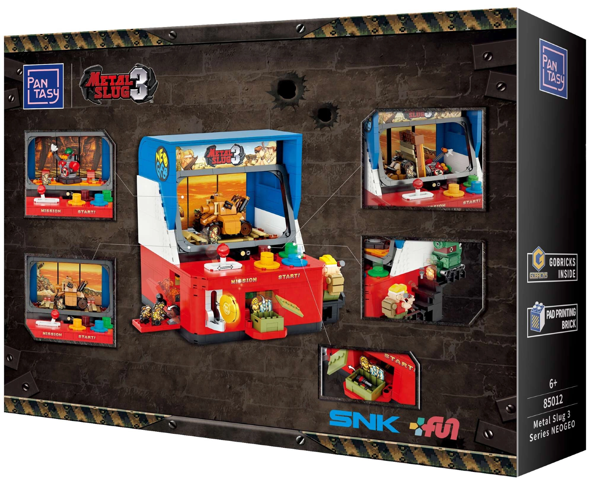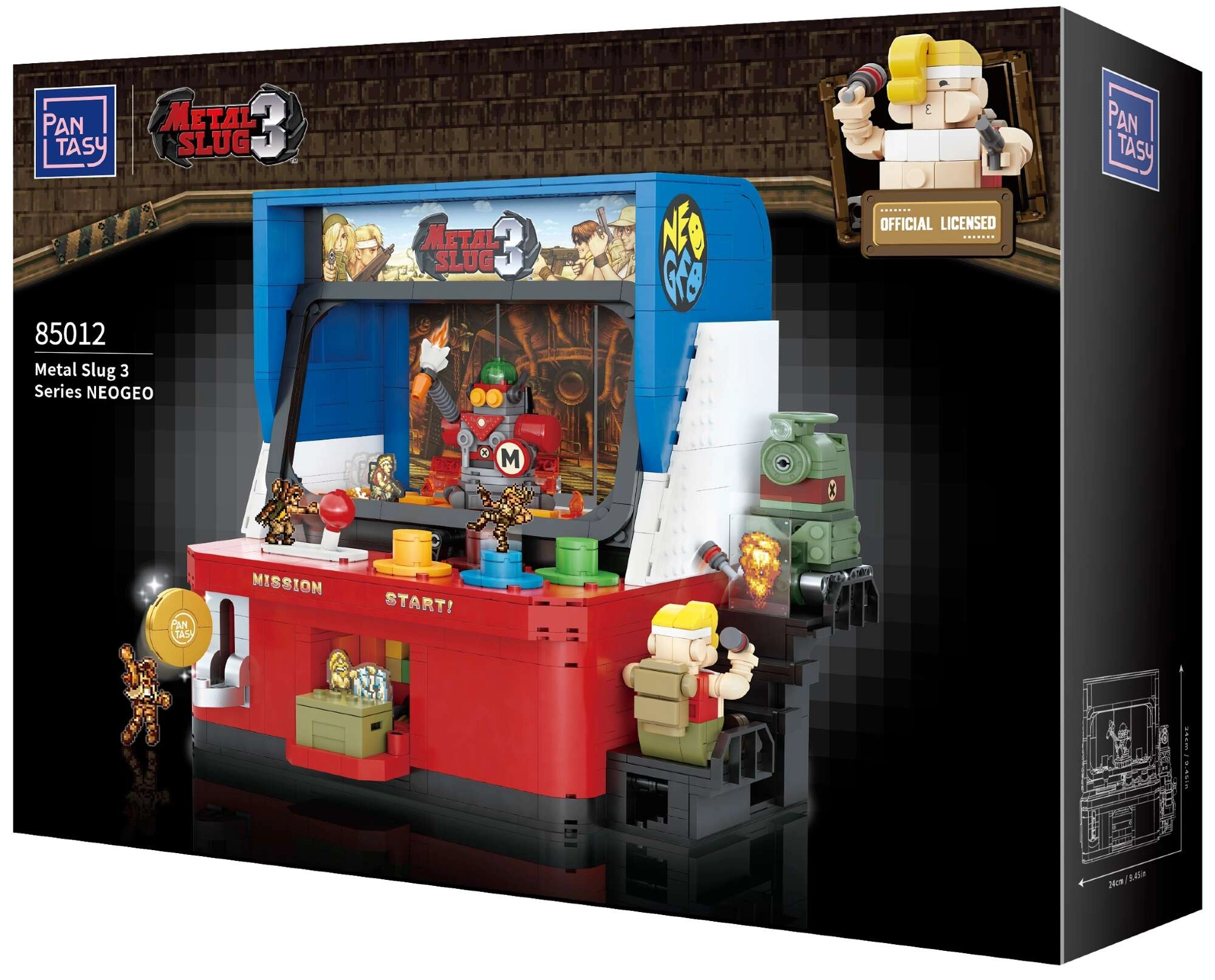 Odkrijte zbirateljski komplet Pantasy, navdihnjen z legendarno serijo METAL SLUG 3 in ikoničnimi arkadami NEOGEO. Set ponuja 1585 kosov iz trpežnega ABS, tiskane podrobnosti brez nalepk in mere modela 24 × 24 × 17 cm. Odlična izbira za ljubitelje retro iger, zbiratelje in ustvarjalne graditelje – z uradno licenco in stilsko embalažo.