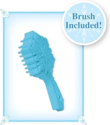 Priložena je tematska krtača, ki nežno razčeše pramene in igri doda čarobno vzdušje FROZEN.