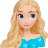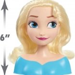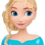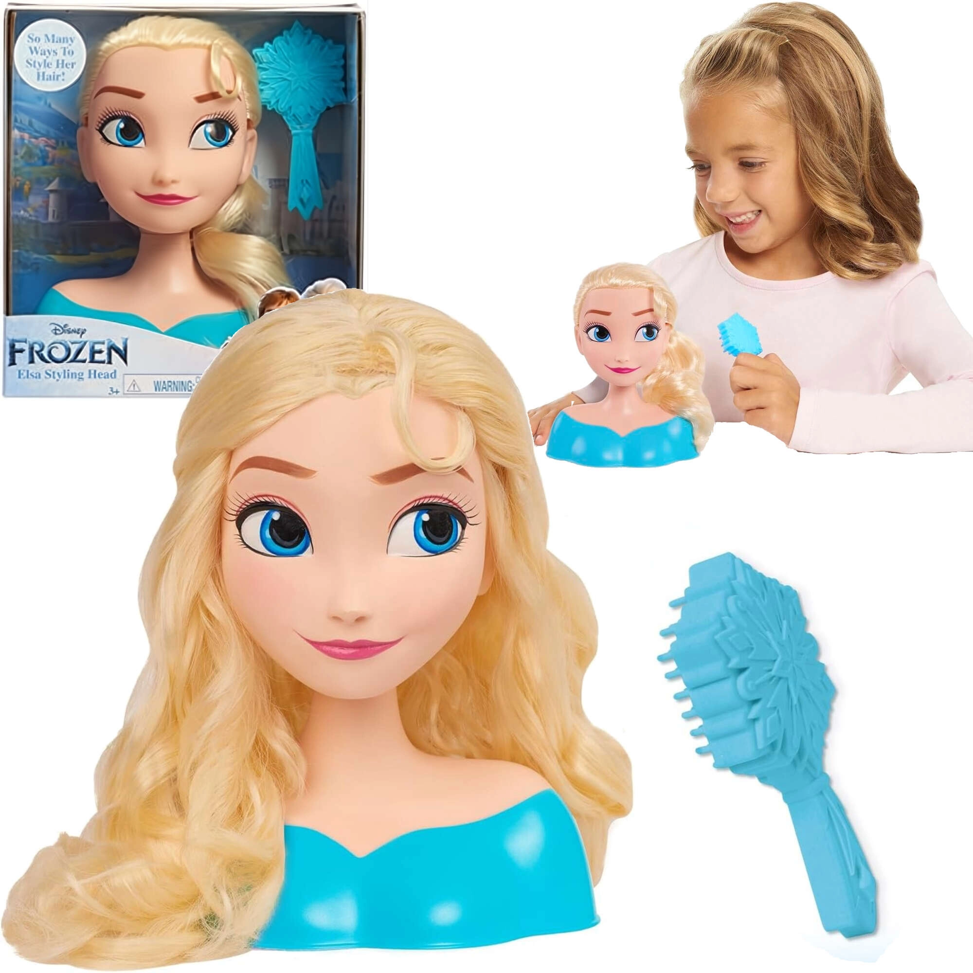 Odkrijte čarobno glavo za česanje in oblikovanje z likom DISNEY FROZEN Elsa. Dolgi, bleščeči blond lasje, velike modre oči in stabilno doprsno stojalo vabijo k kreativni igri. Priložena je krtača v obliki snežinke za enostavno česanje in ustvarjanje pričesk. Idealna igrača za otroke od 3 let, ki razvija finomotoriko, domišljijo in občutek za estetiko.