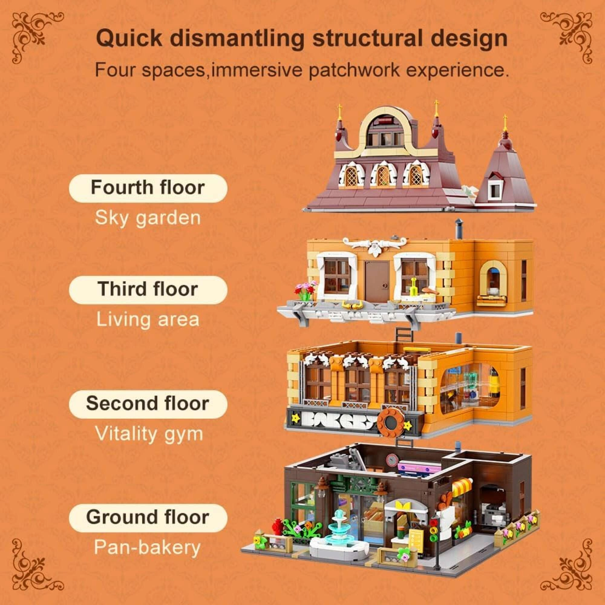 Uživajte v impresivnem modelu, navdihnjenem z evropsko arhitekturo. Topli rjavi toni in premišljeni detajli ustvarjajo pristno vzdušje živahne tržnice – skoraj lahko zavonjate sveže pečen kruh in kavo. Modularna zasnova omogoča enostavno ločevanje nadstropij in njihove predelave za največjo kreativnost in razstavljanje.