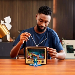 Po sestavljanju nastane stabilen razstavni model z merami približno 23 × 19 × 10 cm, ki odlično izstopa na polici ali pisalni mizi. Jasna navodila po korakih zagotovijo sproščeno gradnjo in prijetno porabljen čas – idealno darilo za ljubitelje retro tehnike in zbiratelje gradbenih kompletov.