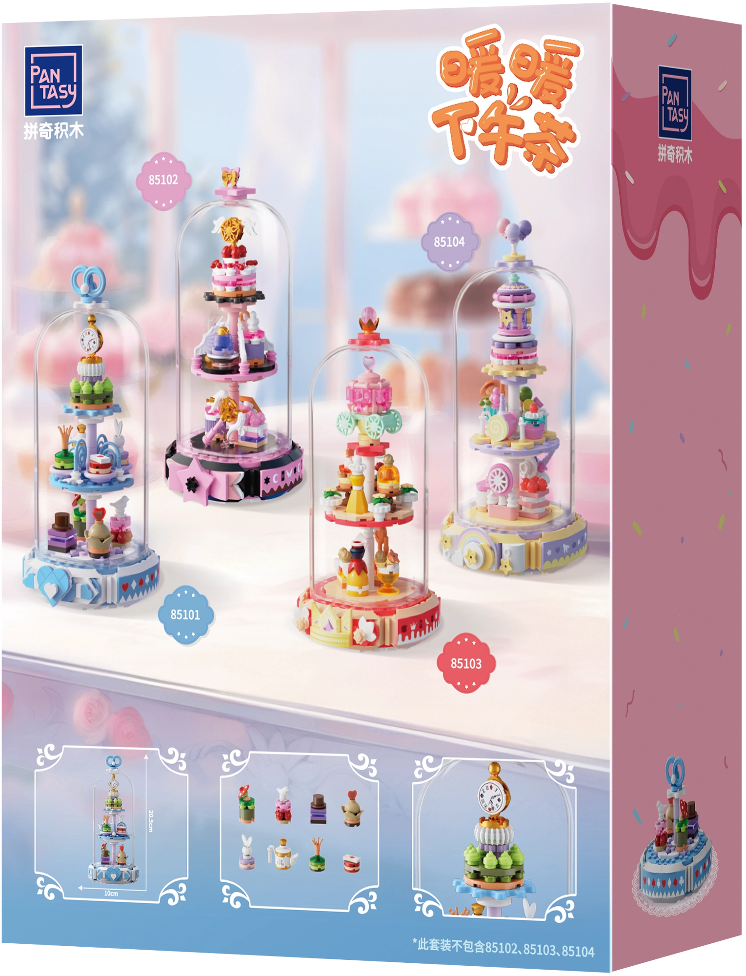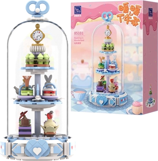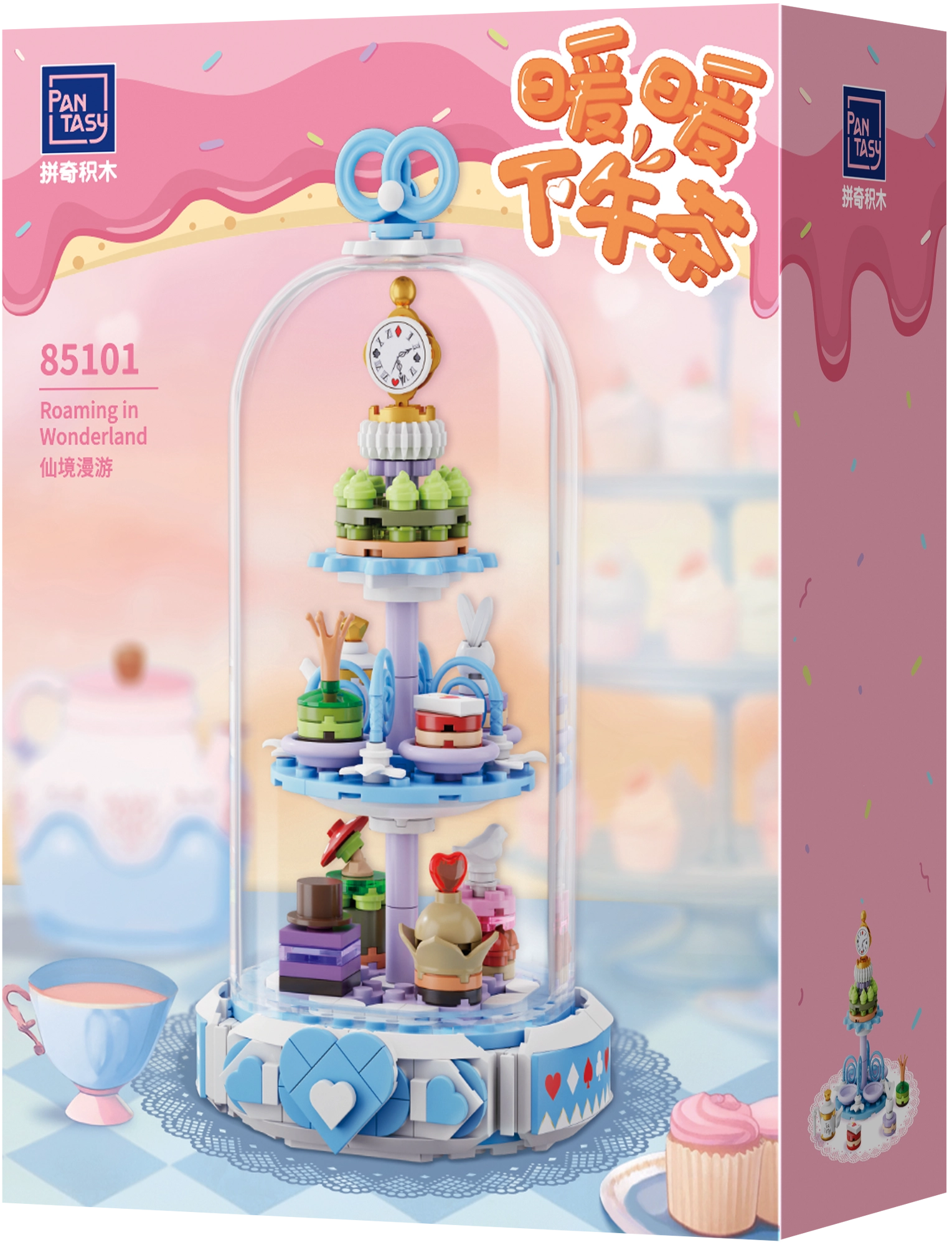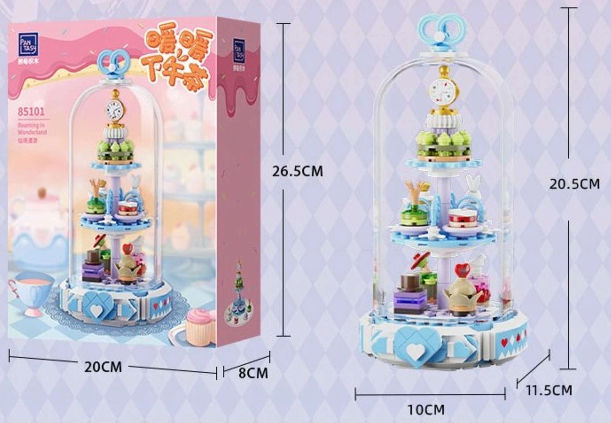 Odkrijte čaroben svet domišljije s konstrukcijskim setom PANTASY Roaming in Wonderland s 233 kosi. Eleganten trietažni stojalo s slaščicami pod prozorno kupolo z vgrajenimi potiski namesto nalepk bo navdušilo otroke in zbiratelje. Kakovosten ABS plast, hitro sestavljanje približno 30 minut in primerno od 6 let naredijo komplet idealno darilo in stilsko dekoracijo.