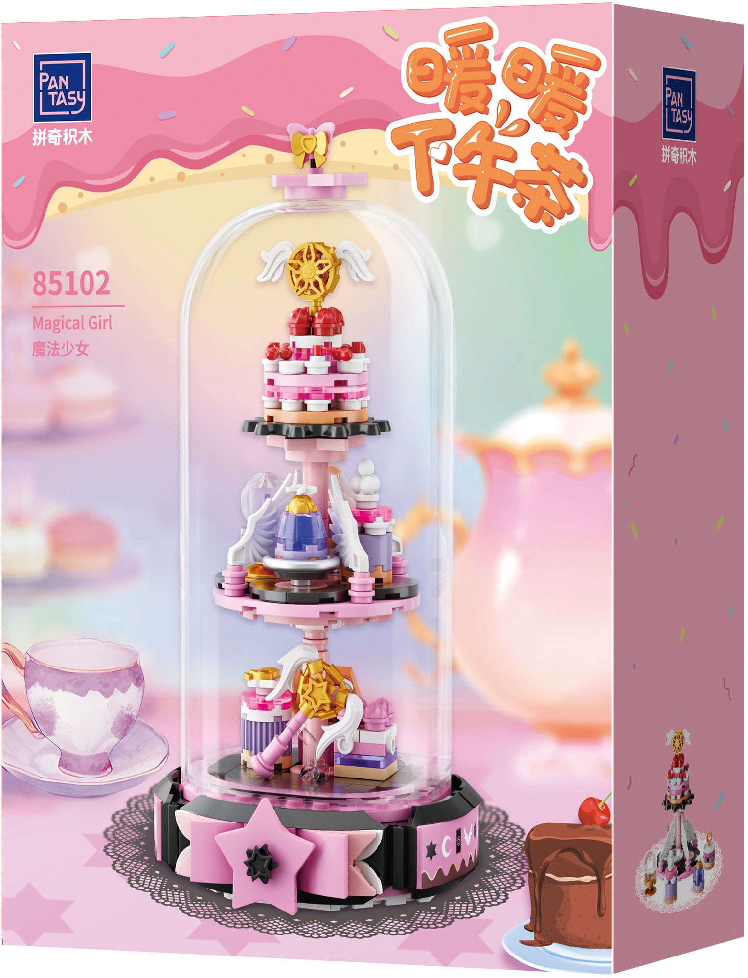 Pantasy Magical Girl je očarljiv konstrukcijski set s 266 koščki, ki združuje čarobno estetiko in natančno izdelavo. Pod prozorno kupolo sestavite trietažni stojalo, polno ljubkih dekoracij, zvezdic in sladkih podrobnosti. Zahvaljujoč tiskanemu potisku brez nalepk model dolgoročno izgleda odlično in je idealen kot dekoracija in darilo za otroke od 6 let naprej ter odrasle ljubitelje sestavljanja.