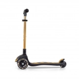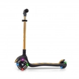 Stajliš otroški skiro MILLY MALLY Boogie Golden navduši z lahko in čvrsto konstrukcijo, tremi stabilnimi kolesi ter svetlečimi LED kolesi za dodatno zabavo. Zahvaljujoč nagibnemu krmiljenju spodbuja razvoj ravnotežja in motorike, nastavljiva višina krmila raste z otrokom, zadnja blatniška zavora pa zagotavlja varno ustavljanje.