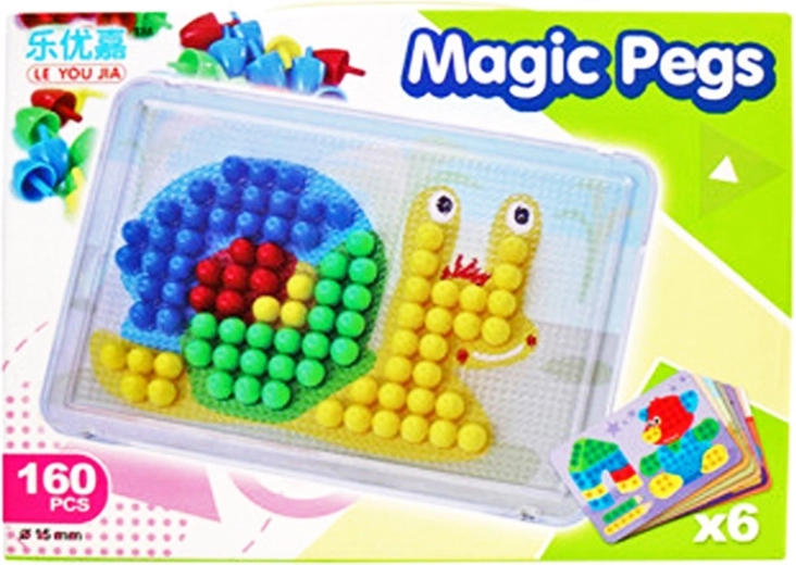 Komplet ponuja odlično zabavo doma in v vrtcu. Trdna podlaga drži čepke na mestu, 6 slikovnih predlog pa prinaša hitro inspiracijo. Vse je izdelano iz trpežnega materiala, ki prenese vsakodnevno uporabo.