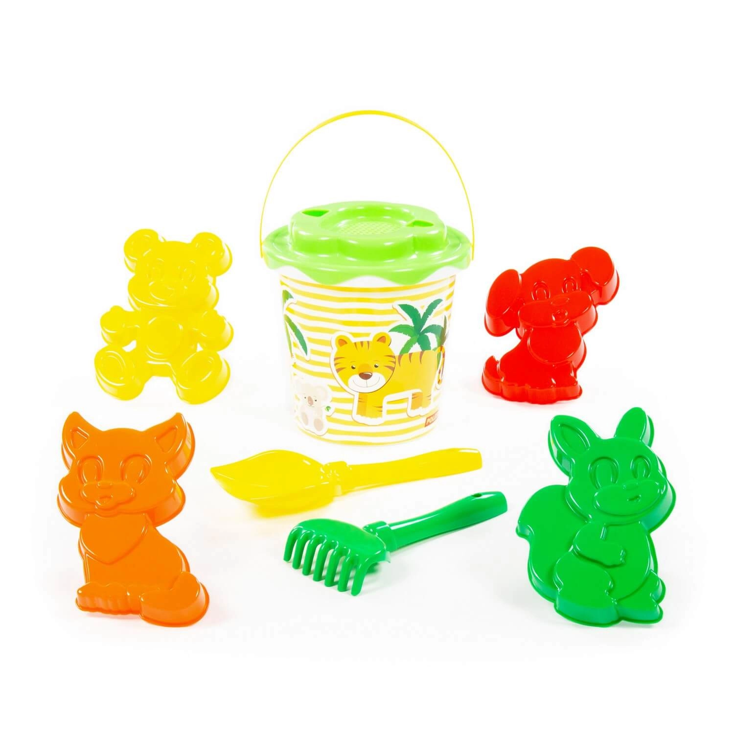 - Popolna oprema – vedro z ročajem, pokrov, lopatka, grabljice in več živalskih modelčkov.