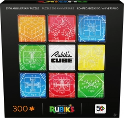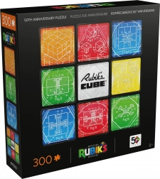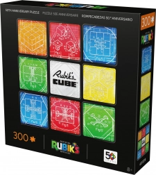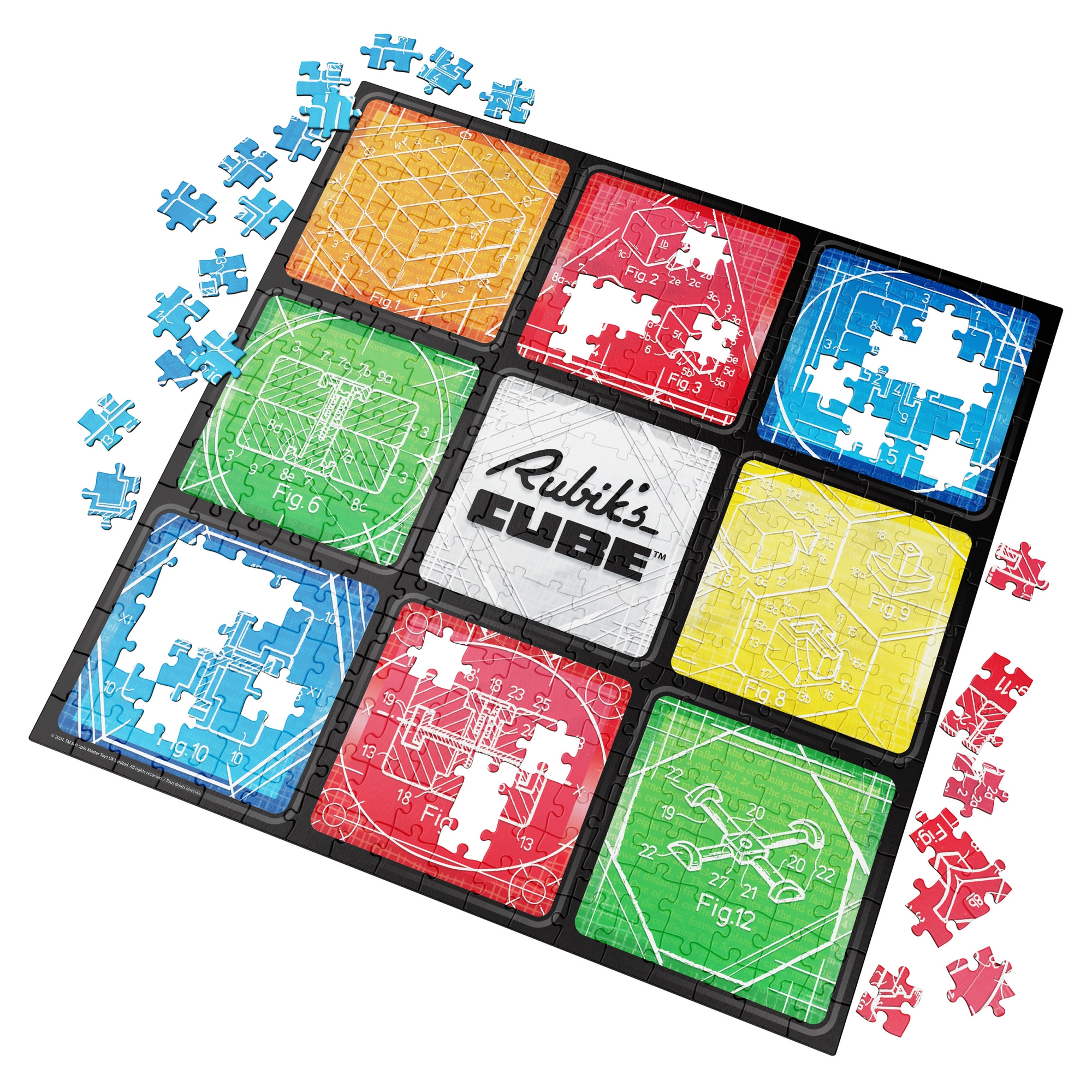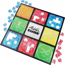 Vsebina in motiv: Po sestavi dobite kvadratno podobo 50,8 × 50,8 cm z devetimi polji, ki se sklicujejo na klasično razporeditev 3×3. Središče kompozicije krasi logotip RUBIK’S CUBE, okolico pa tvorijo tehnični načrti mehanike slavne kocke.