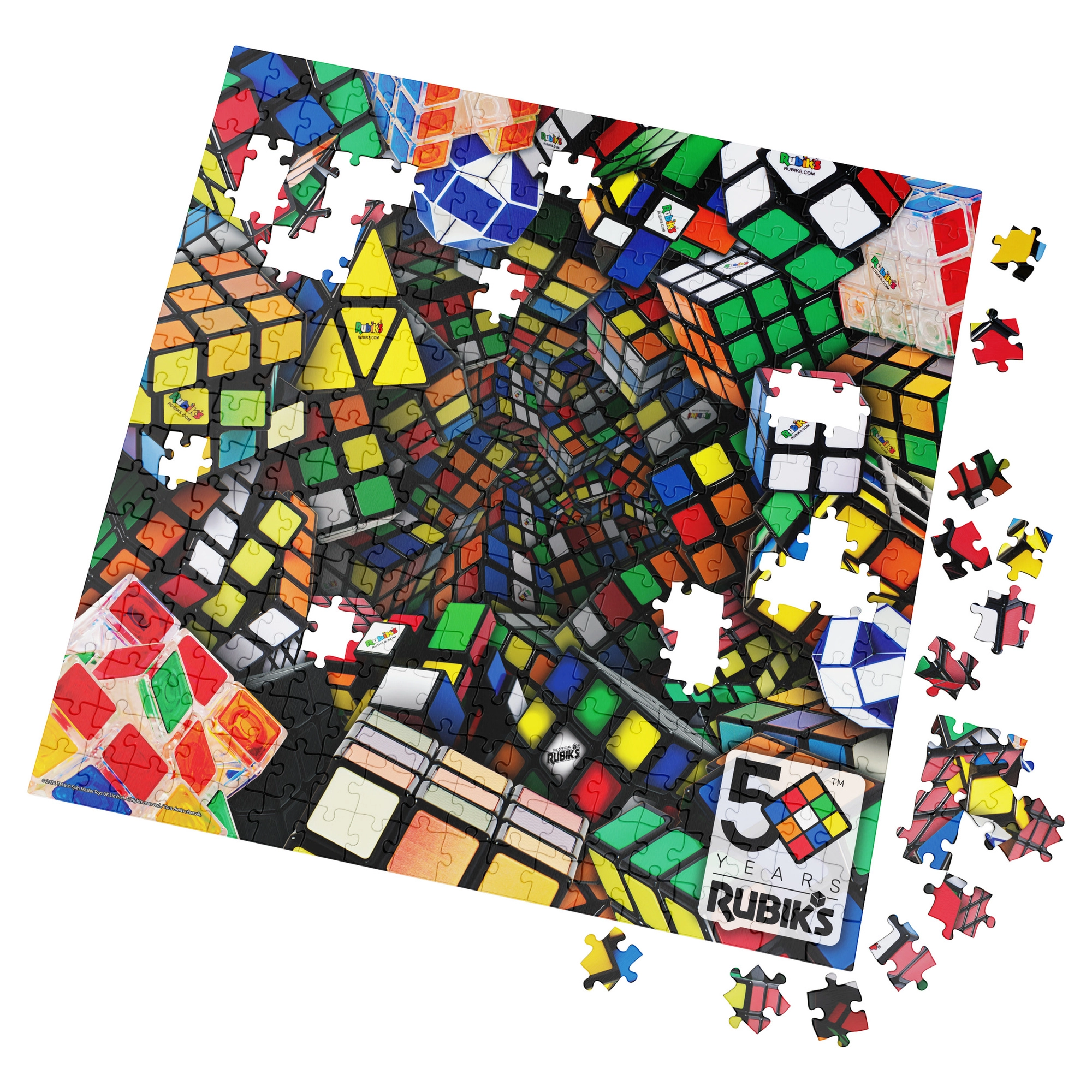 Vstopite v svet ikonične legende miselnih izzivov. Ta sestavljanka ob 50. obletnici Rubikove kocke ponuja energično, skoraj psihedelično kompozicijo različnih oblik in različic kock skozi zgodovino. Živahne barve in dinamični vzorci bodo navdušili vsakega ljubitelja ugank in dizajna.