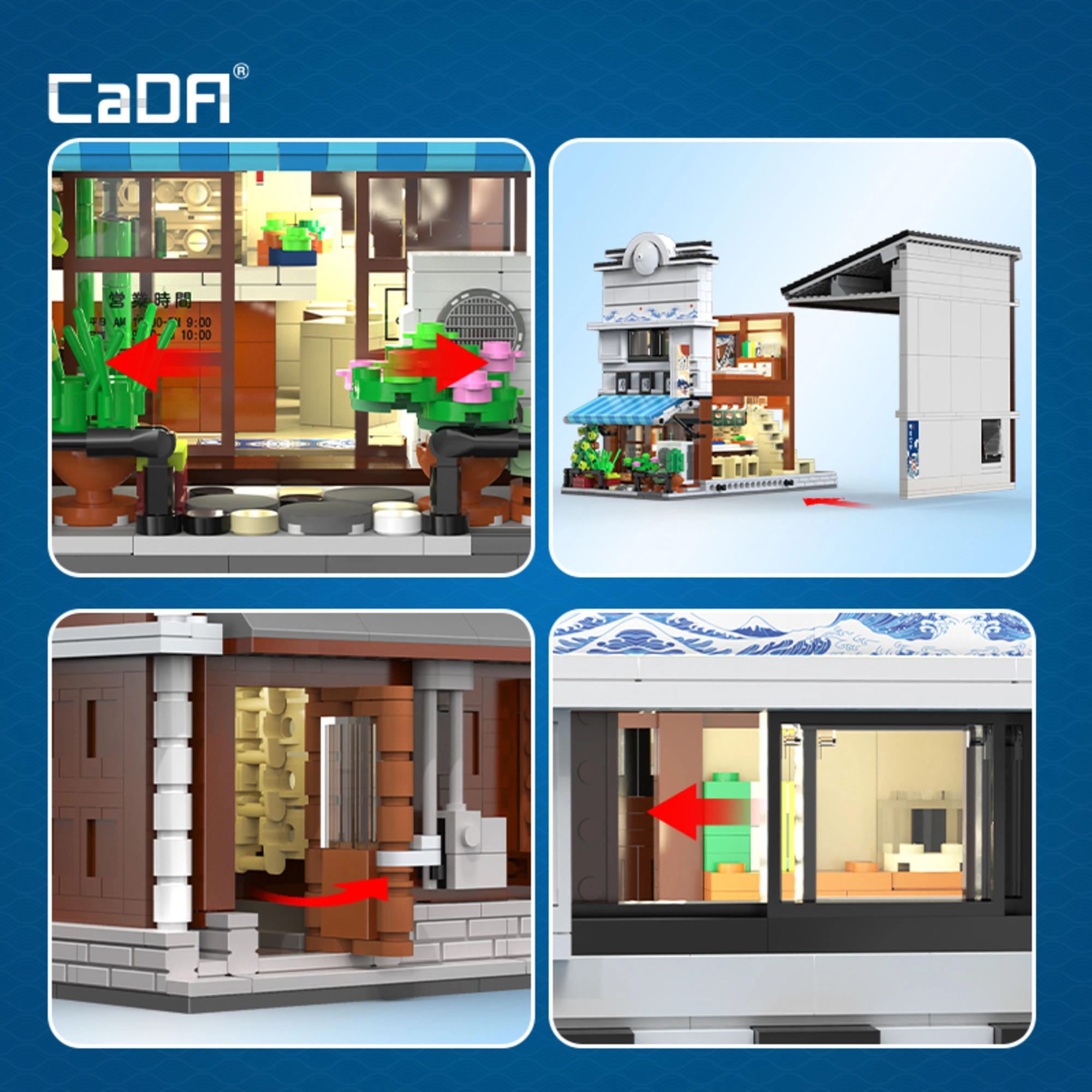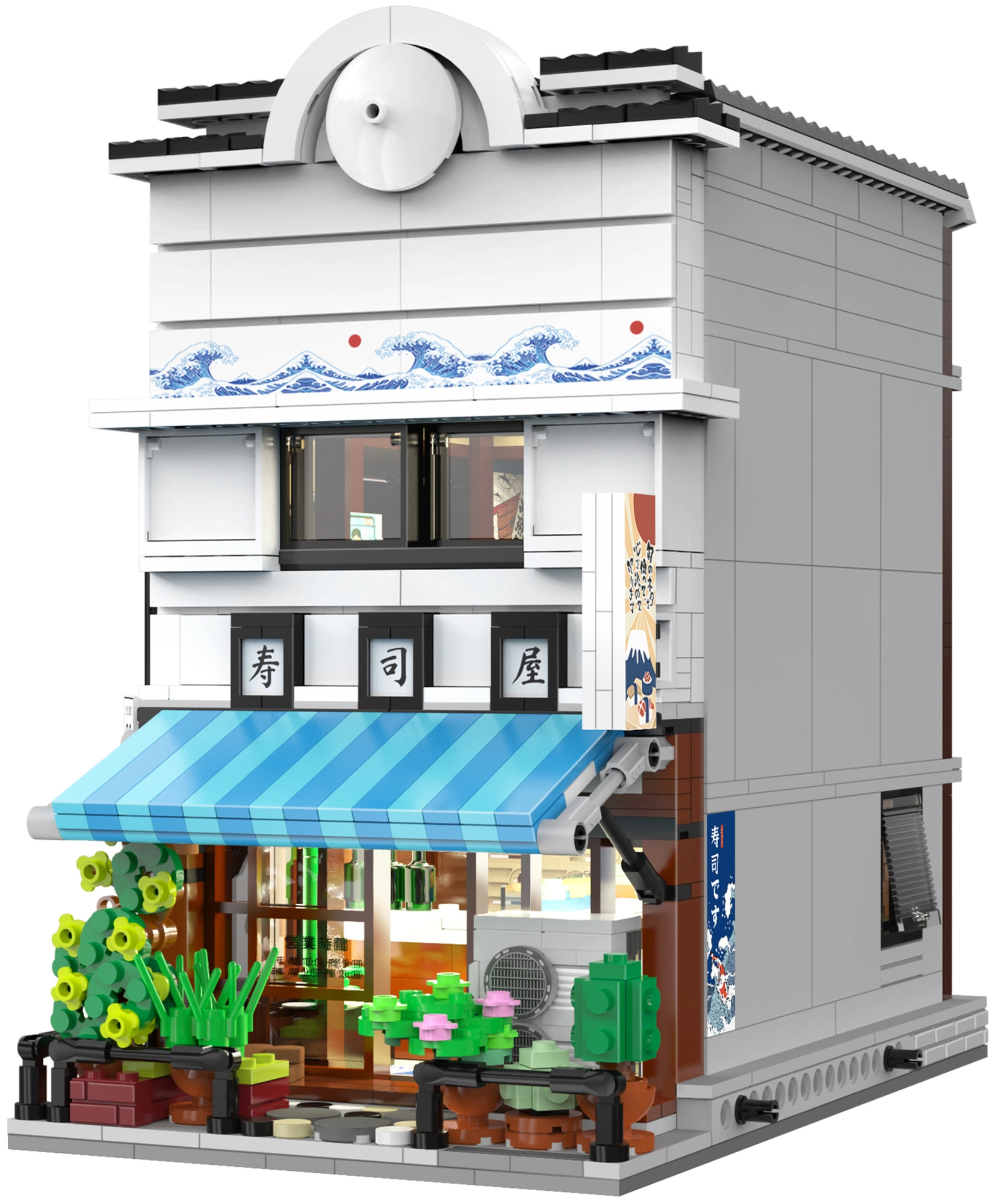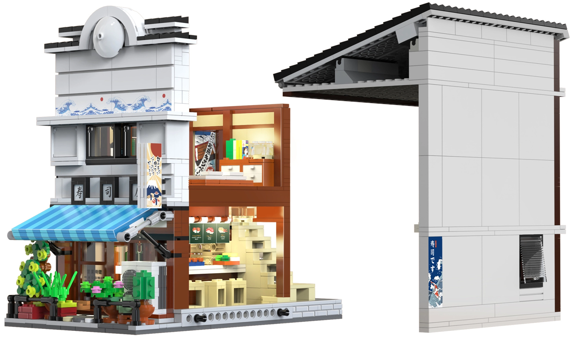 Ta dizajnerski komplet prinaša avtentično japonsko dvonadstropno sushi trgovino s poudarkom na detajlih notranjosti in zunanjosti. Odpirajoča se konstrukcija omogoča enostaven pogled v notranjost – najdete barstole, dekorativni bambus, stopnišče in prijetno sobo v nadstropju s posteljo, televizijo in komodo.