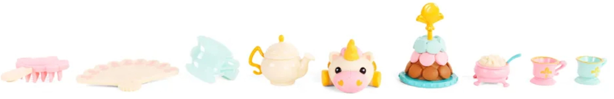 V paketu najdete čajni set, sladice, glavniček, malega samoroga in druge malenkosti za raznolike prizore.