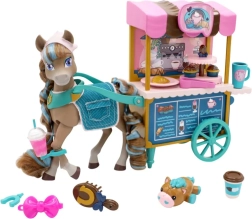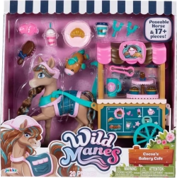 Odkrijte čarobni set Wild Manes s figurico konjička Cocoa in stilskim kavarniškim vozičkom. Otroci bodo uživali v domišljijski igri, strežbi dobrot in negi konjička zahvaljujoč bogatemu priboru. Figurica ima premične okončine, voziček funkcijska kolesca in uzde, ne manjkajo pa prisrčni dodatki kot so kolački, napitki in krtača.