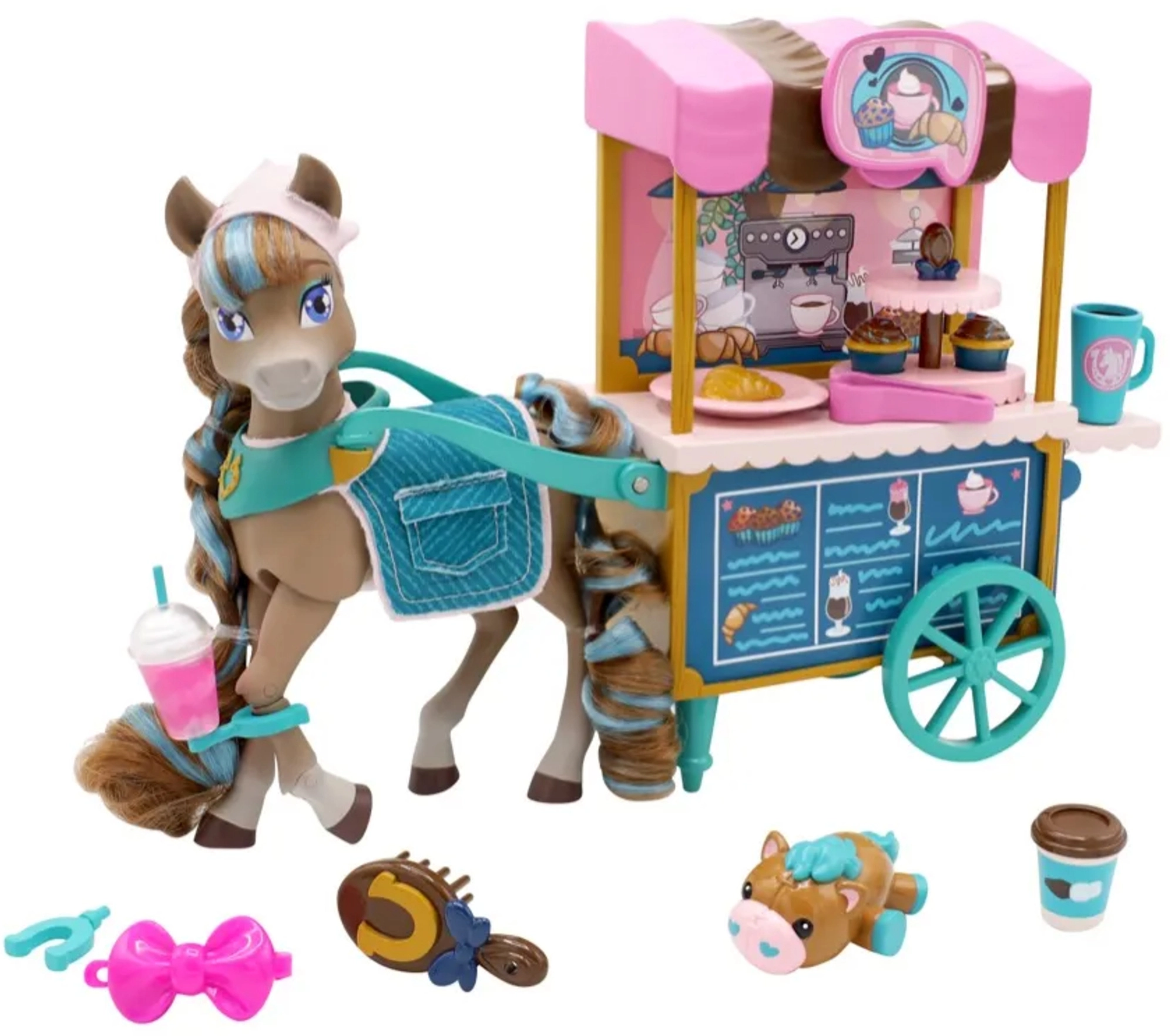 - Figurica konjička Cocoa, kavarniški voziček Bakery Café, dodatki (sladice, napitki, krtača, stojalo za kolačke, ljubljenček ipd.)