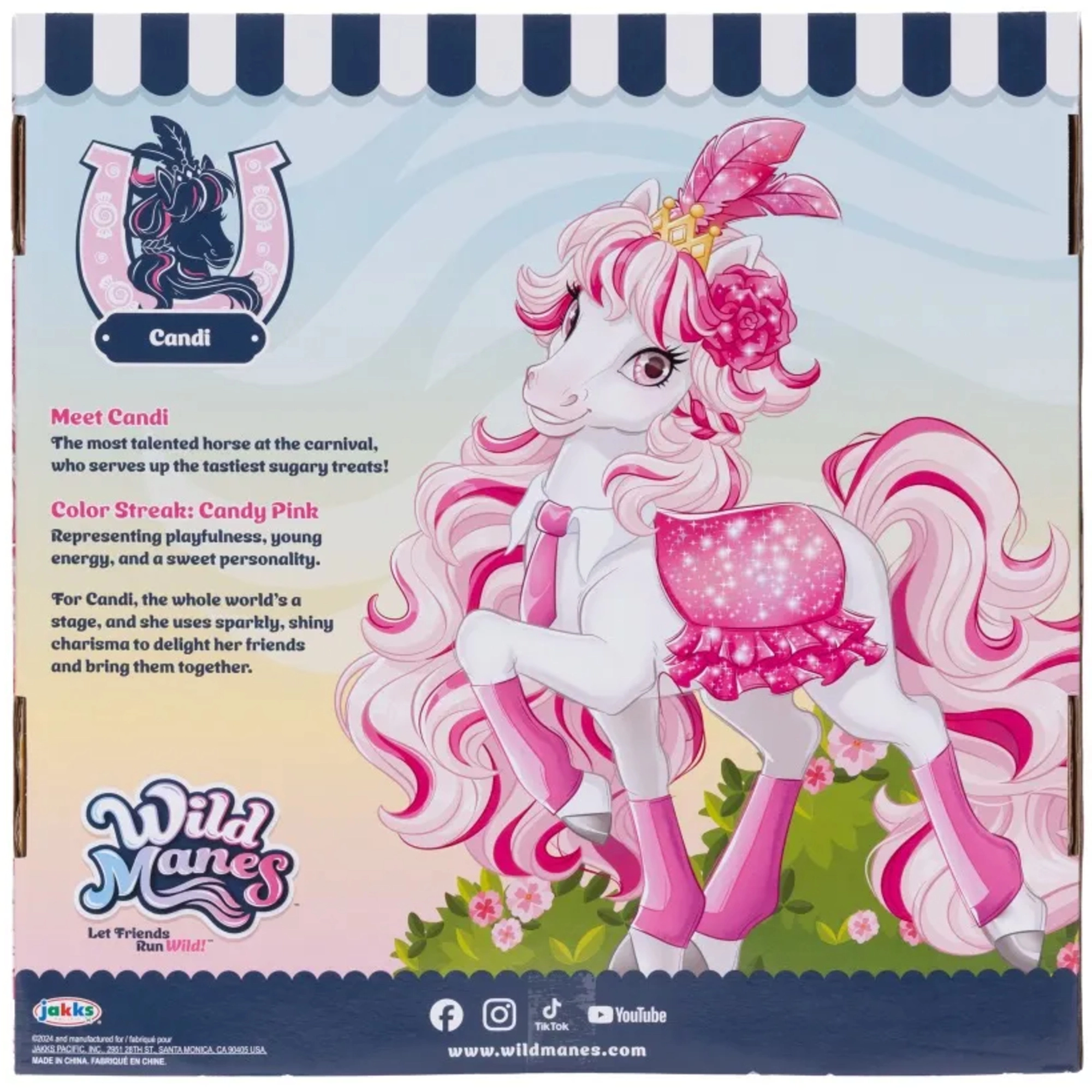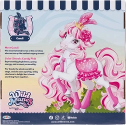 Samorog Candi očara z belim telescem, rožnato grivo in repom, bleščečo kronico in stilskim oblačilom. Zahvaljujoč premičnim okončinam je figurico preprosto postavljati v različne poze in znova doživljati priljubljene prizore iz sveta WILD MANES.