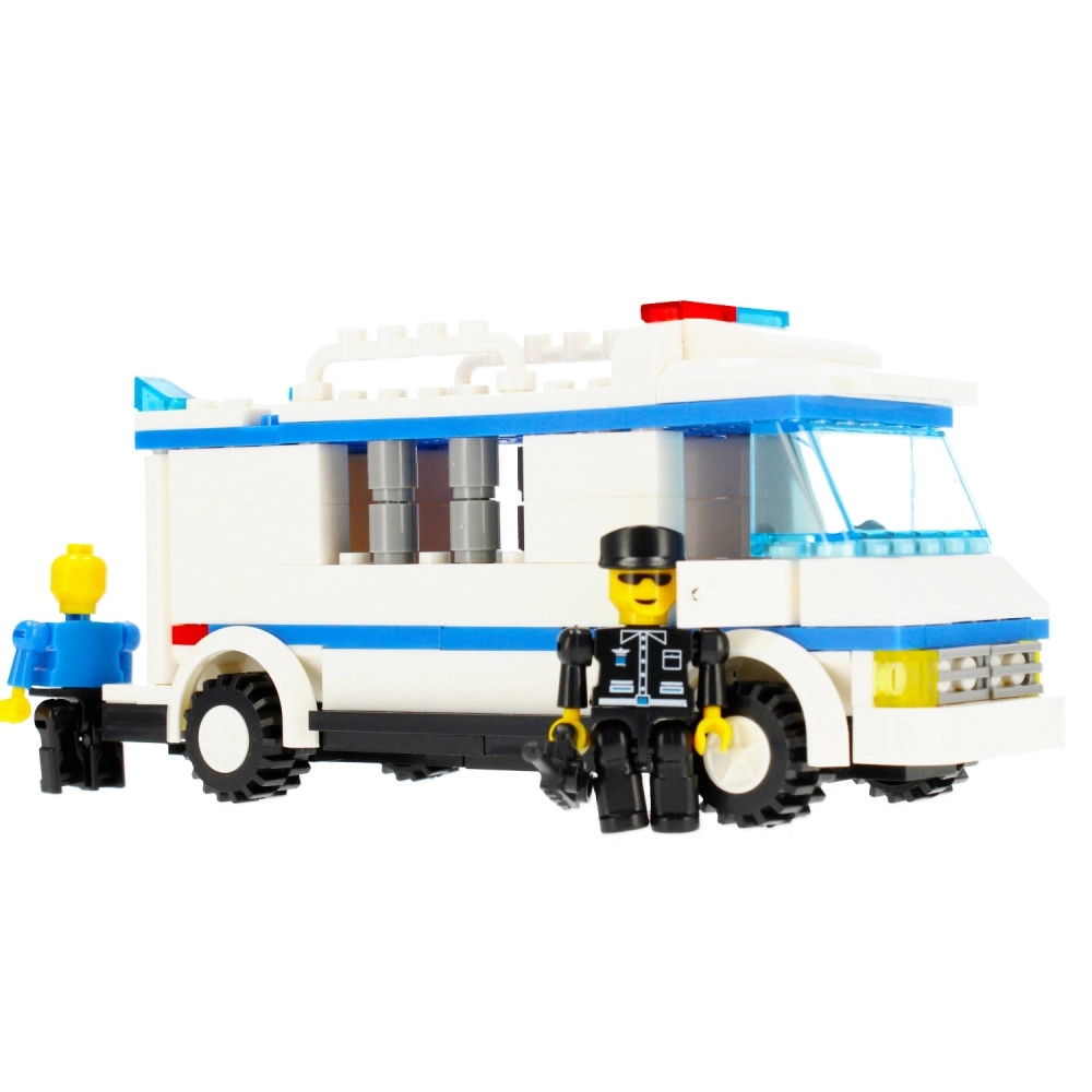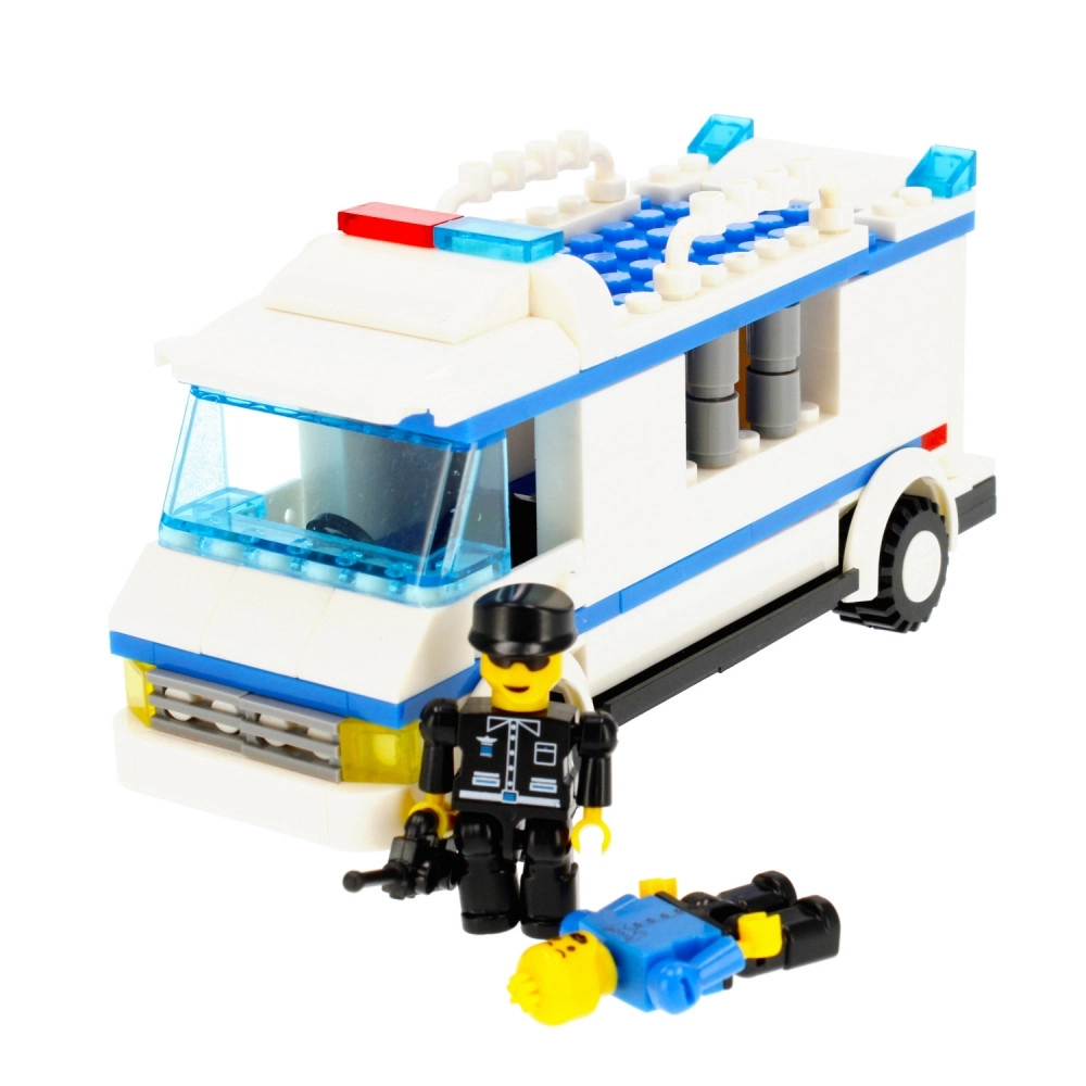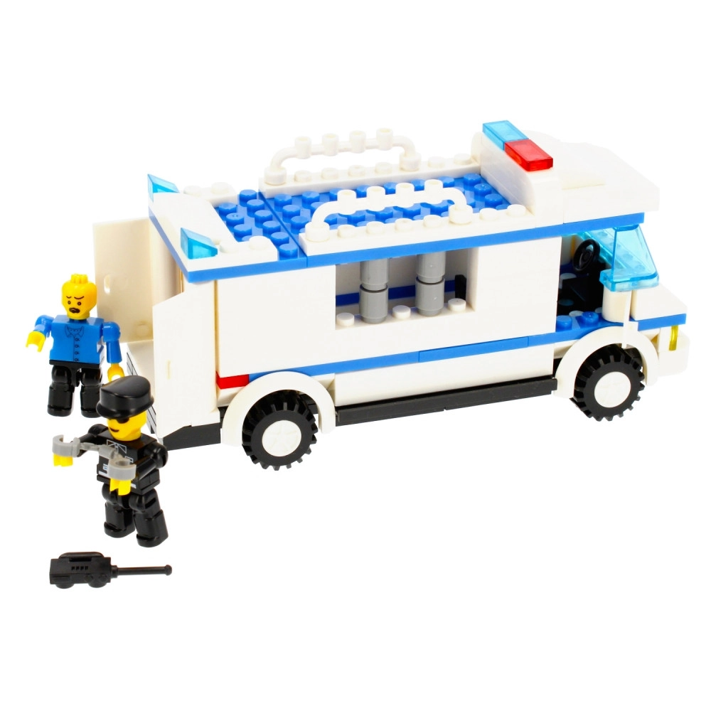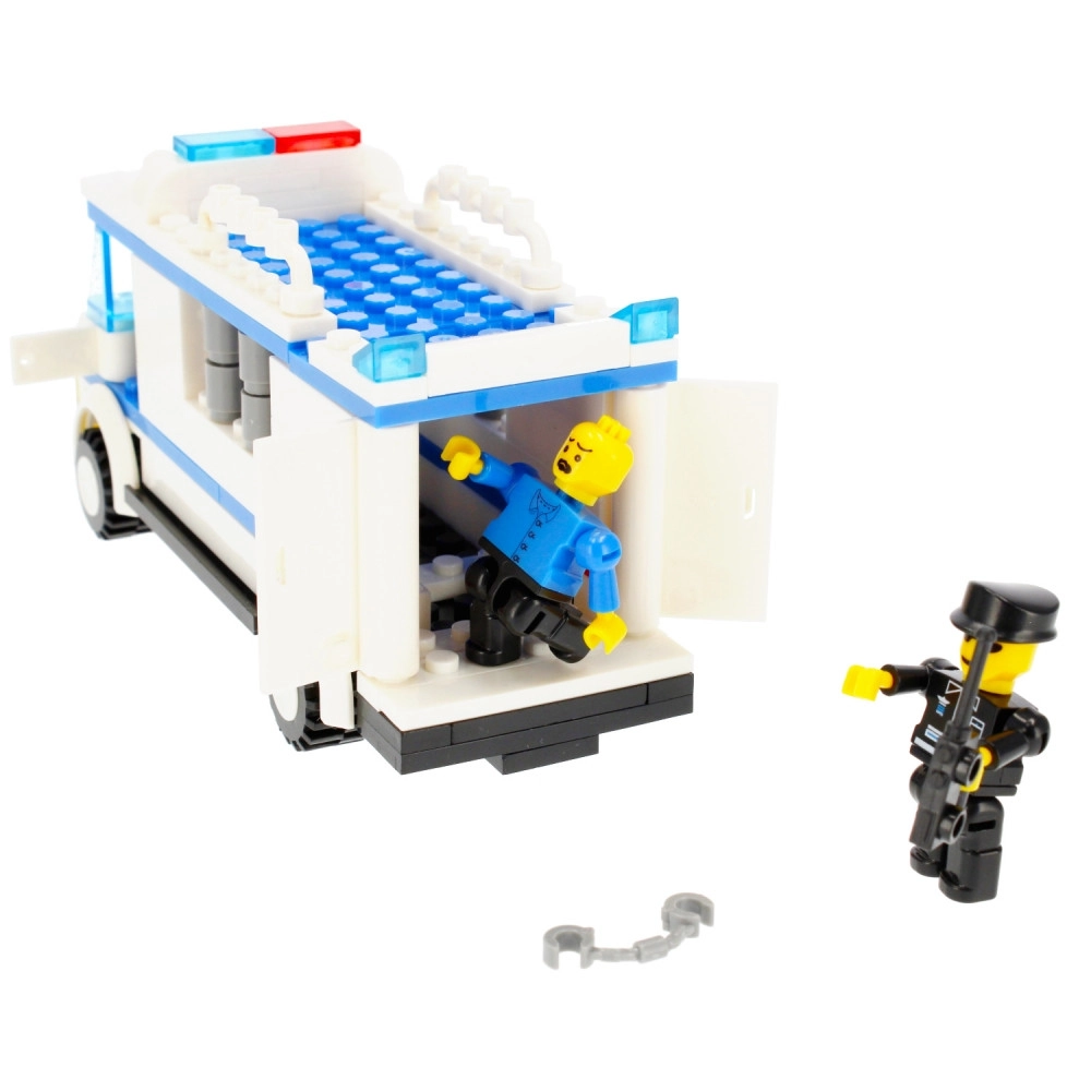 Ta ustvarjalni gradbeni komplet prinaša vse za napeto policijsko zasledovanje in varen prevoz zapornika. Sestavili boste robusten policijski kombi z modrimi lučmi, prozornimi okni in dostopom do notranjosti. Dve minifigurici – policist in zapornik – skupaj z dodatki (npr. radijska postaja, lisice) razširita možnosti igre in spodbujata otroško domišljijo.